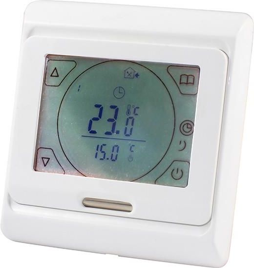 Ogrzewanie elektryczne — producent Jesteśmy pionierami oraz ekspertami rynku produktów ogrzewania elektrycznego zarówno dla budownictwa mieszkaniowego, jak i obiektów przemysłowych. Ponad 20 lat na rynku to tysiące sprzedanych produktów i zrealizowanych projektów. Zdobyte doświadczenia to gwarancja użyteczności, bezpieczeństwa i oczekiwanych korzyści dla klientów. Dzięki naszym produktom dom staje się przyjaznym miejscem, do którego zawsze chce się wracać. Intuicyjność i prostota obsługi to korzyści, jakie zapewniają dostarczane przez nas rozwiązania. Regulator manualny TVT 04 ED 010-0504 Thermoval TVT 04 ED jest elektronicznym, dwuczujnikowym, podtynkowym regulatorem temperatury, przeznaczonym do współpracy z elektrycznym ogrzewaniem podłogowym oraz innymi, tj. elektryczne ogrzewanie powietrzne, wodne ogrzewanie podłogowe, wodne ogrzewanie C.O. Zawiera program tygodniowy w opcjach pracy 5:2d lub 7d, ręczną szybką zmianę temperatury, kalibrację czujnika podłogowego, dostosowanie ilości zdarzeń dziennych 4 lub 6, funkcje detekcji otwartego okna, funkcję "autodiagnostyka błędów". Regulator pozwala na pełną kontrolę temperatury podłogi oraz pomieszczenia w którym zainstalowane jest ogrzewanie podłogowe. Posiada możliwość niezależnej współpracy z kablowym czujnikiem podłogowym, czujnikiem powietrznym lub dwoma czujnikami jednocześnie, podświetlany ekran LCD z trzema trybami podświetlenia, możliwość dowolnej aktywacji czujników, przełącznik włącz/wyłącz. Zakres regulacji temperatury powietrza od +5 do +35°C, zakres regulacji temperatury podłogi od +5 do +50°C, histereza 0,5°C. Kolor obudowy biały. Dane techniczne Przeznaczenie: elektryczne ogrzewanie podłogowe Zastosowanie: wewnątrz budynków Instalacja: na ścianie Instalacja: w puszce elektrycznej Napięcie zasilania [V]: 230 / 50 Hz Wymiary wys./szer./gł. [ mm ]: 85 / 85 / 16 Stopień ochrony: IP21 Klasa ochrony: II Gwarancja podstawowa: 2 lata Materiał obudowy: tworzywo sztuczne ABS Kolor obudowy: biały Rodzaj sterowania: manualny z przyciskami Rodzaj sterowania: programowalny Praca na podstawie parametru: odczytu temperatury Wyposażony w czujniki: kablowy podłogowy i powietrzny Oprogramowanie: tygodniowe Ekran: podświetlany, LCD Funkcje: otwarte okno, dowolny wybór czujników, szybka zmiana temperatury, autodiagnostyka awarii, tryb ręczny Współpracuje z czujnikami: NTC 10 kOhm Współpracuje z czujnikami: NTC 100 kOhm Przekaźnik: potencjałowy 230 V 16A Zakres temperatury odczytu: od +5 do +50°C Pobór mocy [W]: 2