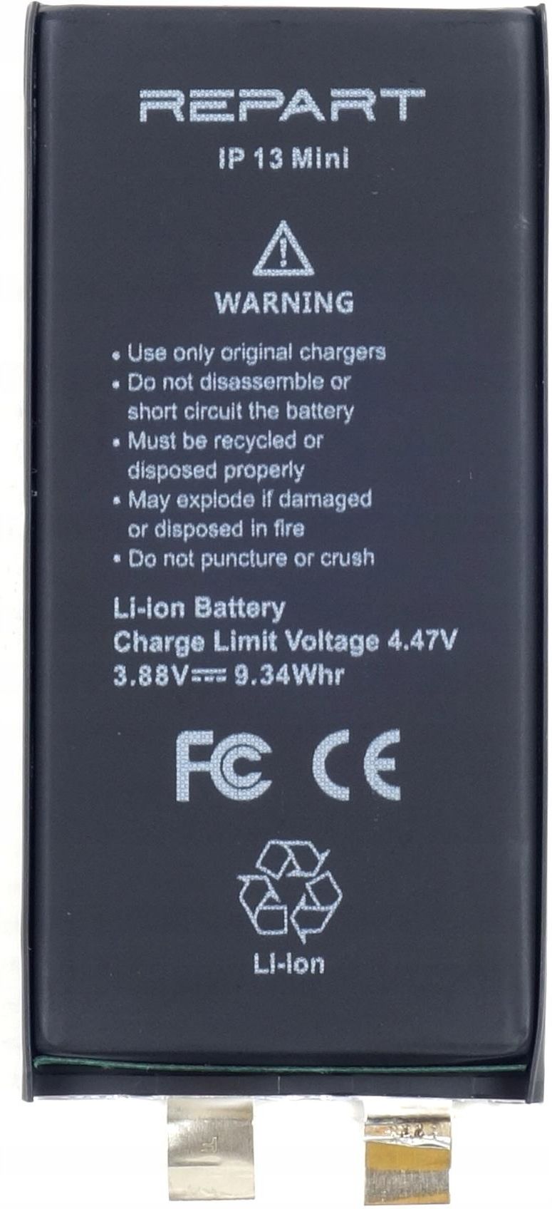 Bateria do Apple iPhone 13 mini 2406 mAh bez BMS (Battery Management System) Dlaczego REPART? Markowe baterie REPART Prime o zwiększonej pojemności pozwolą uzyskać dodatkowy czas pracy na baterii w Twoim telefonie. Mimo większej pojemności baterie są w pełni bezpieczne i posiadają wszelkie zabezpieczenia jak w oryginalnych ogniwach. Baterie pochodzą z bieżącej produkcji i nie są starsze niż kilka miesięcy. REPART gwarantuje najwyższą jakość i długą żywotność akumulatorów. Specyfikacja Oferowane przez nas baterie stworzone są z troską o najmniejsze szczegóły. Posiadają najwyższej jakości ogniwa litowo-jonowe (Li-ion) zapewniając długie i bezpieczne użytkowanie baterii. Baterie posiadają pojemność 2406 mAh, dzięki zastosowaniu ogniw Li-ion nie posiadają efektu pamięci. Dane techniczne pasuje do modelu: iPhone 13 mini rodzaj ogniw: Li-ion (litowo-jonowe) pojemność: 2406 mAh napięcie: 3,88V Czy wiesz, że...? Dodatkowo baterie posiadają zabezpieczenie przed: zwarciem przegrzaniem przeładowaniem przeciążeniem Pasuje do modeli: Apple iPhone 13 mini Towar jest fabrycznie nowy, pochodzi bezpośrednio od producenta. Baterie są starannie i bezpiecznie zabezpieczone na czas wysyłki. Sprawdź, zanim kupisz... Uwaga! Bateria bez taśmy BMS (Battery Management System) wymaga odpowiednich narzędzi do montażu i przeznaczona jest dla profesjonalnych serwisów. W zestawie znajduje się plastikowa osłona z klejem taśma zabezpieczająca