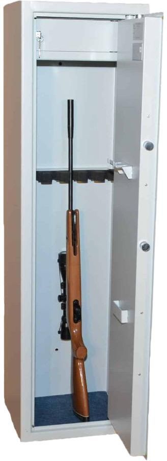 Szafy na broń długąSejfy do przechowywania VALBERG Arsenał 7 to model, który spełnia oczekiwania nawet najbardziej wymagających warunków użytkowych. Na uwagę zasługuje tu konstrukcja, która została zaprojektowana z myślą o właścicielach długiej broni, aby proces przechowywania był nie tylko bezpieczny z punktu widzenia ochrony zdrowia i życia osób trzecich, ale również dopasowany do specyfiki danej broni. Dzięki zastosowaniu wykładziny i specjalnych uchwytów na wyciory broń trzyma się stabilnie nie ocierając o pozostałe modele.Producent VALBERG w sejfie Arsenał 7 zastosował mechanizmy, które odpowiadają europejskim standardom. Zamek kluczowy klasie B charakteryzuje się satysfakcjonującymi parametrami. Atestowane rozwiązania to gwarancja bezpieczeństwa i jakości, która w przypadku sejfów pozostaje priorytetem. Cała konstrukcja wykonana z najlepszej jakości stali nierdzewnej (do usunięcia) została pokryta lakierem z palety RAL o numerze 7035. Jasnoszary odcień wpasowuje się estetykę wnętrz, a jednocześnie kojarzy się z uniwersalnością i funkcjonalnością, dzięki czemu sprawdzi się w każdej przestrzeni użytkowej. W celu uzupełnienia podstawowego zakresu wyposażenia VALBERG Arsenał 7 możliwe jest dopasowanie zamka atestowanego o mechanizmie elektronicznym, który również charakteryzuje się klasą B i gwarantuje najwyższe standardy bezpieczeństwa.Seria szaf na broń ARSENAŁ:- Klasa odporności: S1- Ochrona antywłamaniowa - wg PN-EN 14450- Wyposażone w skarbczyki wewnętrzne zamykane osobnym zamkiem kluczowym- Solidna konstrukcja korpusu i drzwi zapewnia wysoką odporność na sforsowanie- Specjalne uchwyty na wyciorySpecyfikacja techniczna: Klasa odporności: S1 Waga: 68 KG Skarbczyk: 1 Uchwyt na wyciory: 2 Wymiary:Zewnętrzne: Wysokość: 1450 mm Szerokość: 375 mm Długość (głębokość): 345 mm Wewnętrzne: Wysokość: 1444 mm Szerokość: 369 mm Długość (głębokość): 295 mm Wymiary skarbczyka: 145 x 369 x 265 mm- Standardowo dostarczane z atestowanym zamkiem kluczowym w klasie B- Miękkie uchwyty na broń chronią przed jej porysowaniem- W zależności od modelu, możliwość wyposażenia w klasowy zamek elektroniczny (B)- Dno sejfów wyłożone wykładziną- Kolor jasnoszary W sprawie wyposażenia dodatkowego prosimy o kontakt mailowy na adres kontakt@sklepsejfy.pl