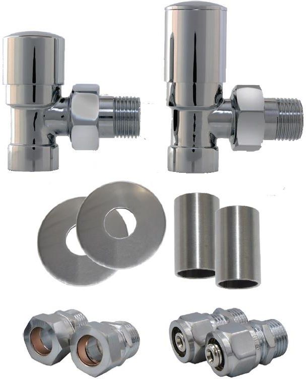 Każdy z produktów możesz kupić na życzenie w wersji do instalacji PEX lub Cu. Zgłoś ten fakt w uwagach do Sprzedającego. Komplet zaworów kątowych SWING, składa się z zaworu regulacyjnego bez głowicy termostatycznej i zaworu odcinającego. Do kompletu SWING dołączamy dwie przejściówki do instalacji wybranej przez Państwa i rozety. Spośród dostępnych opcji należy wybrać komplet z przejściówką pasującą do Państwa instalacji.