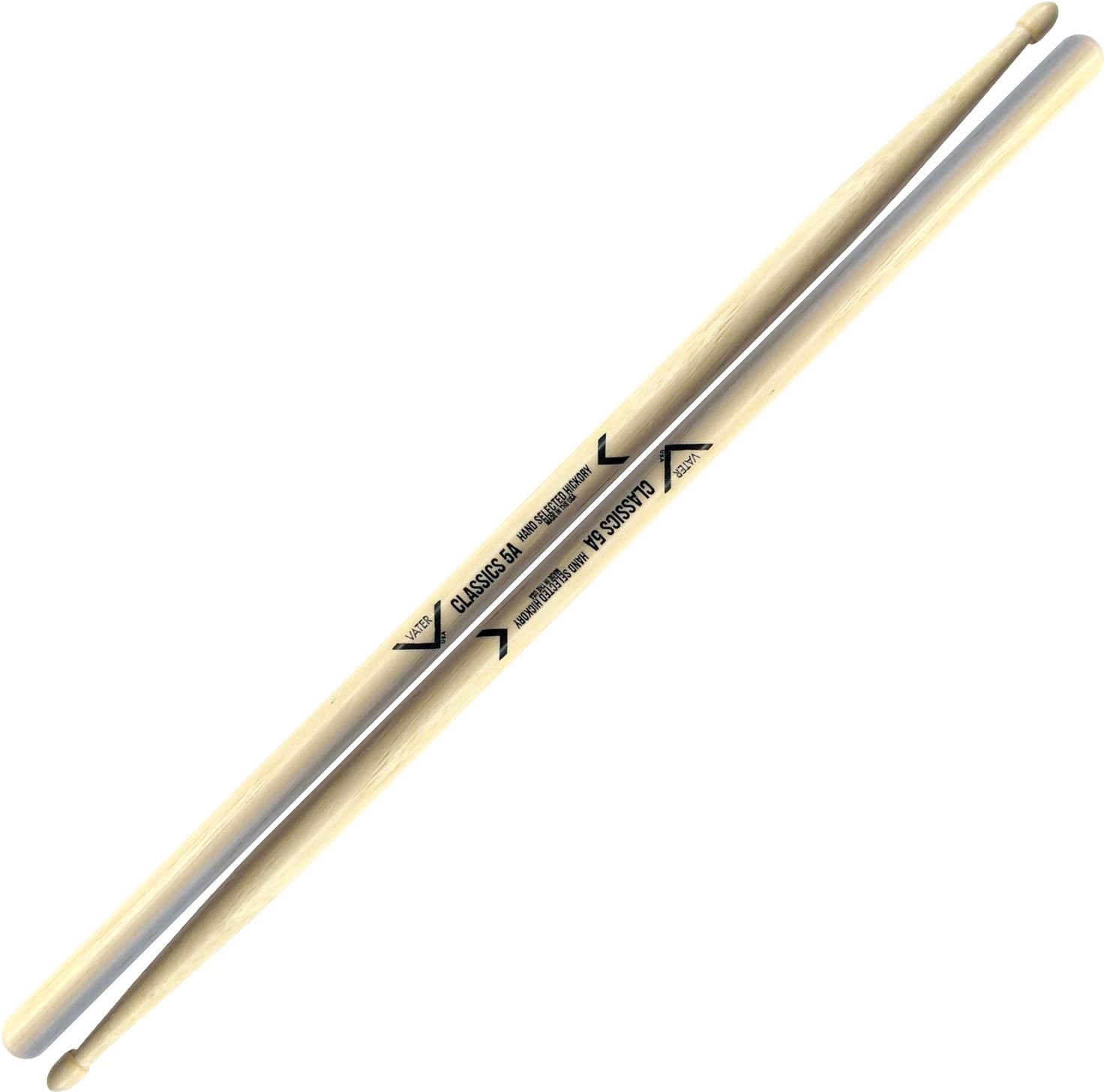 Pałki perkusyjne VATER CLASSICS 5A Wood VHC5AW Pałki perkusyjne ręcznie selekcjonowane i dobierane w pary Zakończone lekko zaokrągloną główką w kształcie żołędzia, pozwalającą na uzyskiwanie klarownego brzmienia bębnów i talerzy Solidny i responsywny model zapewniający niezwykłą łatwość gry …