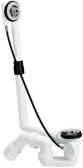 Viega Multiplex syfon wannowy odpływowo-przelewowy kolor: biały jednostka funkcyjna Multiplex do wanny standardowej i głębokiego brodzika komplet odpływowo-przelewowy z sitkiem chromowanym z syfonem i łukiem odpływowym 45 stopni o jakości kontrolowanej wg PN-EN 274 z cięgłem Bowdena o długości 560 …