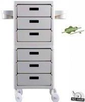 Nowy pomocnik Ceriotti NATURA Platano�wykonany z innowacyjnego materiału CIRCLEAN RECOVER PP3000S IVORY", kt�ry zgodnie z normami składa się z conajmniej w 98% z materiału z recyklingu. Każdy pomocnik NATURA posiada certyfikat EUCERTPALST potwierdzający zgodność z najwyższymi europejskimi standardami w dziedzinie recyklingu Materiał trwały i odporny na zabarwienia. Wyposażony w rewelacyjne, ściągane k�łka zabezpieczone przed wkręcaniem się włos�w oraz innych zanieczyszczeń. 6 otwieranych szuflad. 2 uchwyty na suszarki i akcesoria. Posiada rozmieszczone po bokach 4 funkcjonalne kubki. Wymiary: dł: 57cm, szer: 38cm, wys: 86cm Widoczna na zdjęciach tabliczka nie wchodzi w skład pomocnika.
