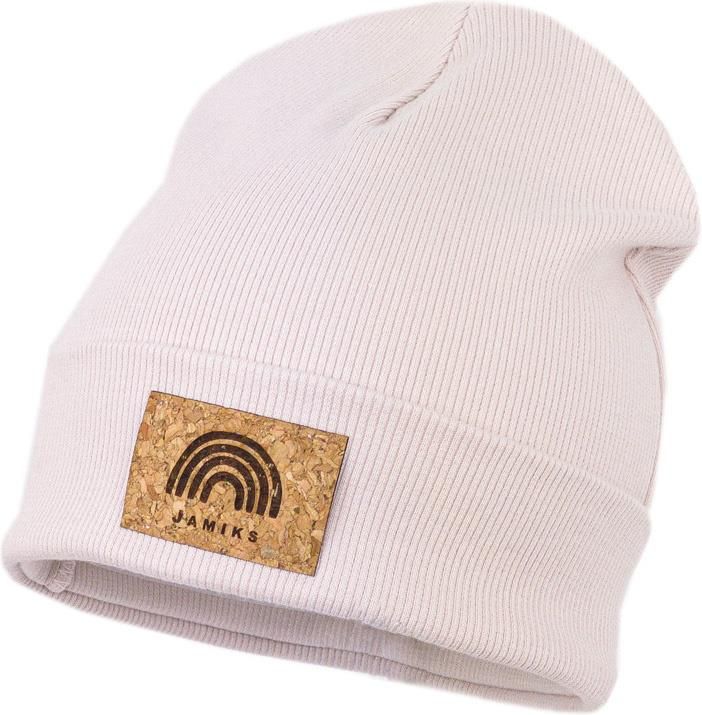 Jamiks BABI czapka dla dzieci zpojedynczej dzianiny prążkowanej.Spód wywinięty z korkową naszywką. Spodoba się każdemu dziecku. Produkty firmy Jamiks wyróżniają się wysoką jakością, niepowtarzalnym wzornictwem oraz gwarancją komfortu