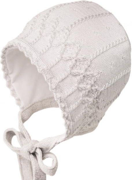 Bonetka dla dziewczynki, wiązana. Jest delikatna w dotyku i “nie gryzie”, posiada bawełnianą podszewkę. Idealna również na wszelkiego typu uroczystości np. na chrzest.Skład:60%bawełna, 32%wiskoza, 4%nić metalizowana, 4%pol