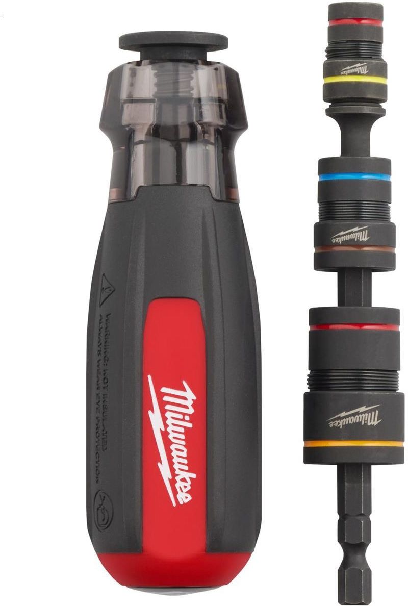 4932498179 WKRĘTAK NASADOWY 6W1 MILWAUKEE Właściwości 3 klucze nasadowe SHOCKWAVE™ IMPACT DUTY o rozmiarach 7, 8, 10, 12, 13 i 17 mm. Zaprojektowane tak, aby pomieścić więcej kluczy nasadowych w jednym rozwiązaniu. Trzpień i klucze nasadowe kompatybilne z wkrętarkami udarowymi. Magnetyczny trzpień SHOCKWAVE™ IMPACT DUTY. Przechowywanie na trzpieniu dla łatwego dostępu. Antypoślizgowy uchwyt zapewnia najlepszą ergonomię. Wkrętak nasadowy udarowy 6w1 Milwaukee Produkt fabrycznie nowy-oryginalnie zapakowany