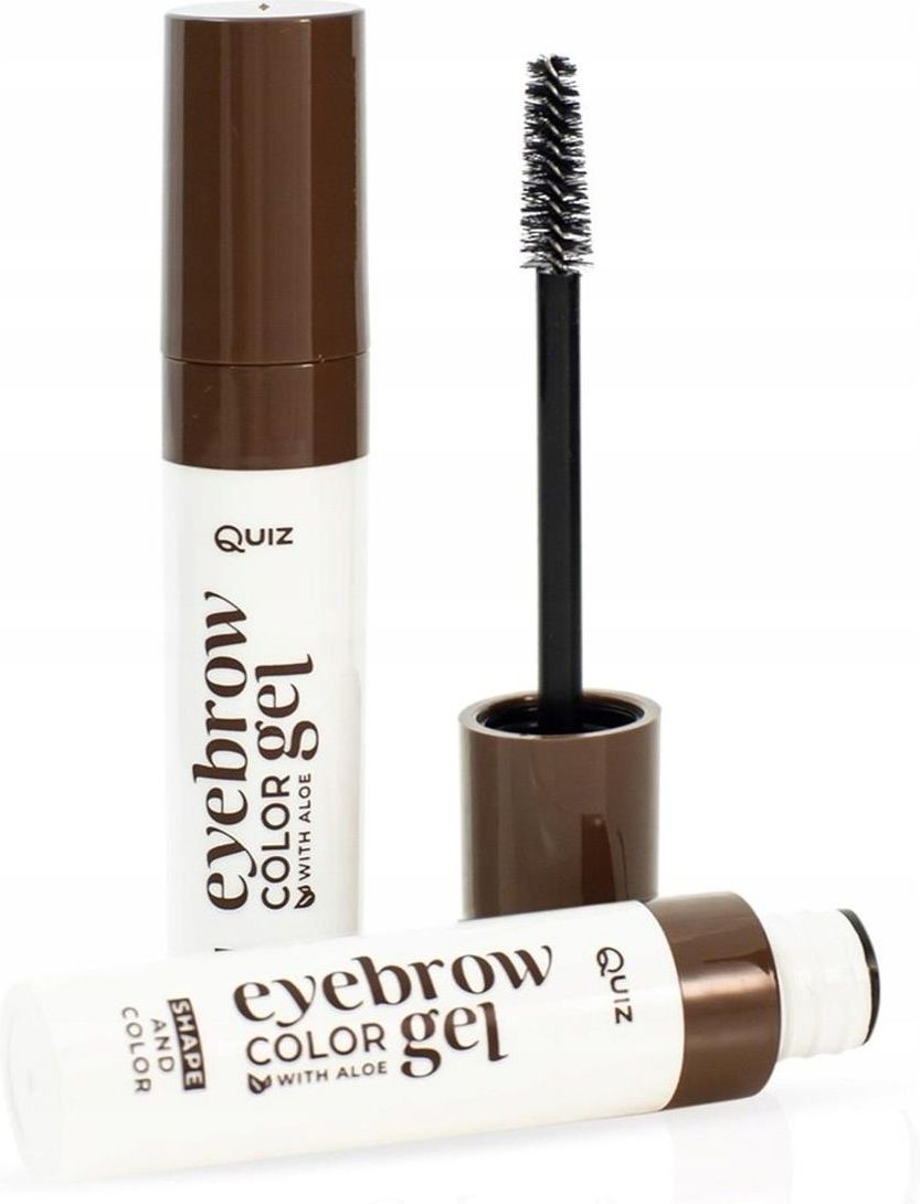 Quiz Cosmetics Eyebrow Gel Shape & Color Żel koloryzujący do brwi z aloesem Dark (1) 5ml Quiz Cosmetics Eyebrow Gel Shape & Color Żel koloryzujący do brwi z aloesem Dark (1) Eyebrow Gel Shape And Color to koloryzujący żel do brwi, który szybko wypełnia i optycznie zagęszcza włoski, nadając im idealny kształt. Doskonale wyrównuje kolor, podkreślając naturalny efekt pięknie zdefiniowanych brwi. Wzbogacony o nawilżającą formułę na bazie aloesu, dba o kondycję skóry i włosków przez cały dzień, pozostawiając je miękkie i zdrowe. • Szybkie wypełnienie i perfekcyjne podkreślenie kształtu • Intensywne wygładzenie i nawilżenie dzięki aloesowej formule • Naturalny kolor i efekt gęstych, pięknie zdefiniowanych brwi