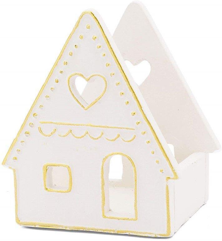 Opis Opis Linii Kolekcja LALINEADORO to elegancka linia dekoracyjnych dodatków inspirowana klasycznym stylem. Produkty, takie jak świeczniki i osłonki na doniczki, w kształcie uroczego domu, idealnie wpasowują się w różne aranżacje wnętrz. Charakterystyczne dla tej serii jest minimalistyczne połączenie bieli i złota, które nadaje każdemu elementowi wyjątkowy, subtelny wygląd. Kolekcja łączy estetykę z funkcjonalnością, dodając wnętrzom przytulności i elegancji, a zarazem świetnie sprawdza się jako praktyczne rozwiązania dekoracyjne. Opis Produktu Świecznik na tealight w kształcie urokliwego domku to elegancki dodatek, który wniesie ciepło i przytulną atmosferę do każdego wnętrza. Jego subtelny design, w kolorze białym z delikatnymi złotymi akcentami, nadaje mu wyjątkowy charakter, idealny na wieczory przy świecach. Przeznaczony na małe tealighty, ten dekoracyjny świecznik rozprasza miękkie, nastrojowe światło, tworząc przyjemny klimat w domu. Świetnie sprawdzi się jako dekoracja na różne okazje, dodając wnętrzu elegancji i uroku. Cechy szczególne Uroczy design w kształcie domu, idealny do wnętrz w stylu klasycznym lub skandynawskim Odświętne złote detale, dodające elegancji i stylu Idealny do świeczek typu tealight