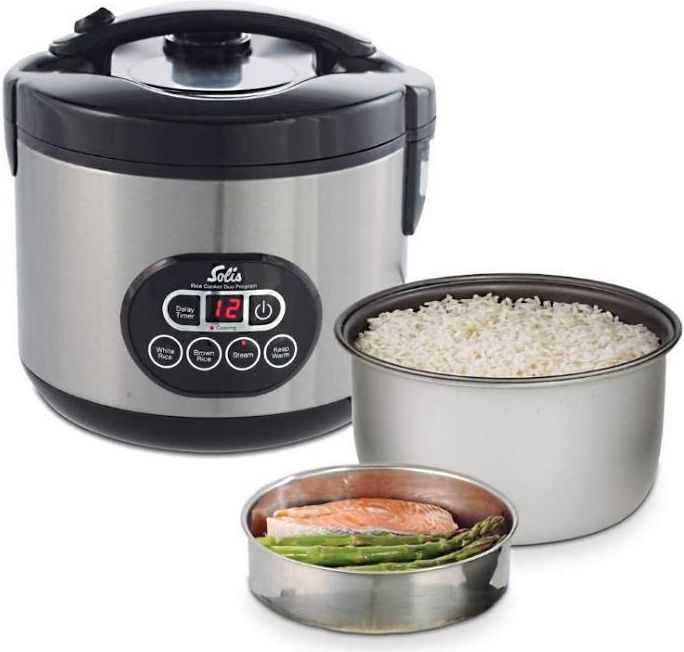 SOLIS Ryżowar Duo Program 1.2l Producent: Solis Kod producenta: SOL97930 Kod EAN: 7611210979302 UWAGA! Ważna Informacja! W naszych aukcjach proszę sugerować się opisem - parametry i tytuł mogą posiadać błędy spowodowane niepoprawnym połączeniem z katalogiem Allegro. Solis Rice Cooker Duo Program urządzenie do gotowania ryżu i warzyw Jedno urządzenie do gotowania ryżu i gotowania na parze warzyw, ryb i drobiu. Dzięki programowi Solis Rice Cooker Duo można wykonywać obie czynności nawet w tym samym czasie. Ryż pikantny lub słodki, ryż szafranowy, komosa ryżowa, ryż do risotto, ryż jaśminowy, basmati i dziki. Solis opanował sztukę gotowania idealnego, puszystego ryżu, pozwalając jednocześnie gotować na parze warzywa, ryby i drób, oszczędzając energię, miejsce i czas.Proces gotowania odbywa się w pełni automatycznie: Rozpocznij proces gotowania, wybierając żądany program. Ta pomoc kuchenna jest w stanie wyprodukować do 12 filiżanek ugotowanego ryżu na raz. Równomierne rozprowadzanie ciepła i powłoka nieprzywierająca miski zapewniają równomiernie ugotowany ryż bez przywierania. Proces gotowania kończy się automatycznie, a urządzenie do gotowania ryżu przełącza się w tryb utrzymywania ciepła na okres do 10 godzin, po czym urządzenie automatycznie się wyłącza. Praktyczna funkcja opóźnionego timera pozwala ustawić odliczanie od 1 do 15 godzin, po których ryż ma się ugotować. Oznacza to, że rano możesz dodać ryż i wodę do urządzenia do gotowania ryżu, aby wieczorem, po powrocie do domu, czekać na Ciebie pysznie ugotowany ryż.Dzięki dodatkowej funkcji gotowania na parze, świeże i mrożone warzywa, ryby, drób, owoce morza, a nawet inne potrawy, takie jak pierogi, można łatwo przygotować, zachowując jednocześnie składniki odżywcze i witaminy. Naciskając wielokrotnie przycisk pary, czas gotowania na parze można zwiększyć o jedną minutę do maksymalnego czasu gotowania na parze wynoszącego 30 minut.Dzięki powłoce zapobiegającej przywieraniu miskę do gotowania można łatwo wyczyścić ciepłą wodą z mydłem. Wkład do gotowania na parze ze stali nierdzewnej nadaje się nawet do mycia w zmywarce. Po prostu wyczyść resztę urządzenia wilgotną ściereczką i gotowe. Jedyne, co musisz zrobić, to usiąść i cieszyć się świeżo ugotowanym, zdrowym posiłkiem! Funkcja opóźnionego startuUstaw odliczanie od 1 do 15 godzin, po których ryż ma się ugotować, aby mieć obiad czekający na Ciebie po powrocie z pracy. Całkowicie automatycznyZa pomocą jednego dotknięcia przycisku ryż i warzywa są gotowane w pełni automatycznie i utrzymywane w cieple nawet do 10 godzin. Do wszystkich rodzajów ryżuNadaje się do gotowania dzikiego, brązowego i białego ryżu, takiego jak sushi i basmati. Duża pojemnośćDzięki pojemności 1,2 litra możesz łatwo ugotować do 12 filiżanek ugotowanego ryżu, czyli tyle samo, co 6 filiżanek surowego ryżu. Funkcja gotowania na parzeWyposażony do gotowania na parze świeżych i mrożonych warzyw, ryb, drobiu, owoców morza i innych produktów spożywczych przez okres do 30 minut. Łatwe czyszczenieMiskę do gotowania z powłoką zapobiegającą przywieraniu można łatwo umyć w ciepłej wodzie z mydłem, a wkładkę do gotowania na parze można myć w zmywarce. Użyj programu Solis Rice Cooker Duo, aby automatycznie ugotować do 12 filiżanek ryżu, co oznacza, że możesz łatwo przygotować jedzenie dla większej grupy osób lub gotować na parze warzywa, ryby i drób. Gotowane na parze jedzenie zachowuje większość składników odżywczych i witamin, dzięki czemu doskonale nadaje się do zdrowej i zbilansowanej diety. Gotuj ryż i warzywa nawet w tym samym czasie, aby łatwo przygotować pełny posiłek za pomocą tego urządzenia do gotowania ryżu 2 w 1. Aby przygotować słodki ryż, możesz zastąpić wodę mlekiem kokosowym, sokiem jabłkowym, pomarańczowym lub ananasowym. Łatwość użytkowaniaAby wyposażyć Cię we wszystko, czego potrzebujesz, aby rozpocząć w pełni automatyczne gotowanie ryżu i gotowanie warzyw na parze, dołączono miarkę i urządzenie do gotowania ryżu. Jedna pełna, równa filiżanka surowego ryżu daje 2 filiżanki ugotowanego ryżu. Urządzenie do gotowania ryżu to idealne narzędzie, jeśli chodzi o serwowanie ugotowanego ryżu bez robienia lepkiego bałaganu. Tylko kilka przycisków, wyświetlacz i wskaźniki świetlne to wszystko, czego potrzebuje to urządzenie, aby łatwo przygotowywać jedzenie w domu. Specjalny pojemnik zbiera skroploną wodę i odprowadza nadmiar wilgoci z ryżu podczas gotowania, dzięki czemu ryż jest zawsze idealnie ugotowany. Wiele innych inteligentnych funkcji, takich jak sygnał dźwiękowy, sprawia, że gotowanie jedzenia w programie Solis Rice Cooker Duo jest jeszcze wygodniejsze. Wysoka jakość i trwałośćUrządzenie jest wykonane z odlewanego ciśnieniowo aluminium i stali nierdzewnej, co ułatwia czyszczenie i zapewnia trwałość podczas długotrwałego użytkowania. Jego nieprzywierająca patelnia do gotowania i wkład do gotowania na parze ze stali nierdzewnej ułatwiają gotowanie i czyszczenie. W rezultacie nie tylko spędzasz mniej czasu na gotowaniu, ale także oszczędzasz czas na sprzątanie po gotowaniu.Uniwersalny, trwały i łatwy w użyciu, Solis Rice Cooker Duo Program to idealne narzędzie do gotowania dla zapracowanych osób, które chcą przygotowywać zdrowe jedzenie w sposób całkowicie automatyczny! W pełni wyposażonyW zestawie miarka i łopatka do ryżu. Wszystko, czego potrzebujesz, to ryż i woda, aby rozpocząć gotowanie. Kolektor kondensatuOdprowadza nadmiar wilgoci z ryżu podczas gotowania, aby zapewnić, że ryż jest zawsze ugotowany idealnie. Wyjmowany w celu łatwego czyszczenia. Wysoka jakośćNaczynie do gotowania ryżu wykonane z odlewanego ciśnieniowo aluminium i stali nierdzewnej, garnek do gotowania z powłoką zapobiegającą przywi