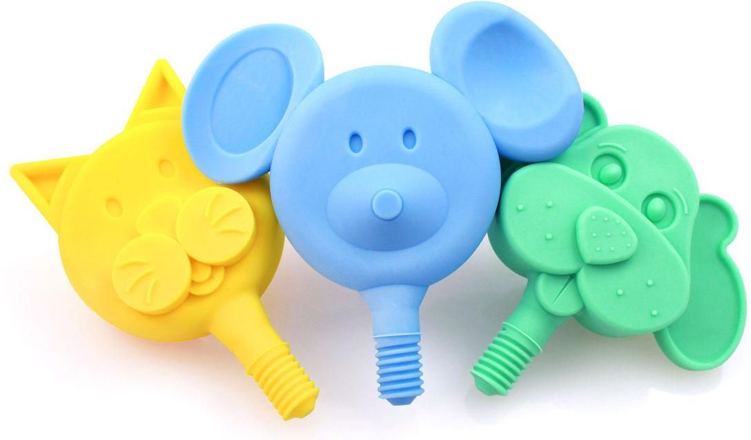 W skład zestawu wchodzą 3 gryzaki kompatybilne z wibratorami logopedycznymi typu: Z-Vibe, Z-Grabber, Rerek. Gryzaki logopedyczne posiadają urozmaiconą trójwymiarową strukturę dostarczającą licznych wrażeń czuciowych. W skład zestawu wchodzą 3 końcówki: Końcówka Masująca do Wibratora Logopedycznego KOTEK Końcówka Masująca do Wibratora Logopedycznego MYSZKA Końcówka Masująca do Wibratora Logopedycznego PIESEK Końcówki zostały wyprodukowane w USA w zgodzie ze standardami FDA. Produkt nie zawiera ołowiu, ftalanów, PCV, BPA czy lateksu. Każda z końcówek masujących wchodzących w skład pakietu jest wyszczególniana jako osobna pozycja na fakturze VAT. Sprawdź inne pomoce logopedyczne i pomoce terapeutyczne. Instrukcja