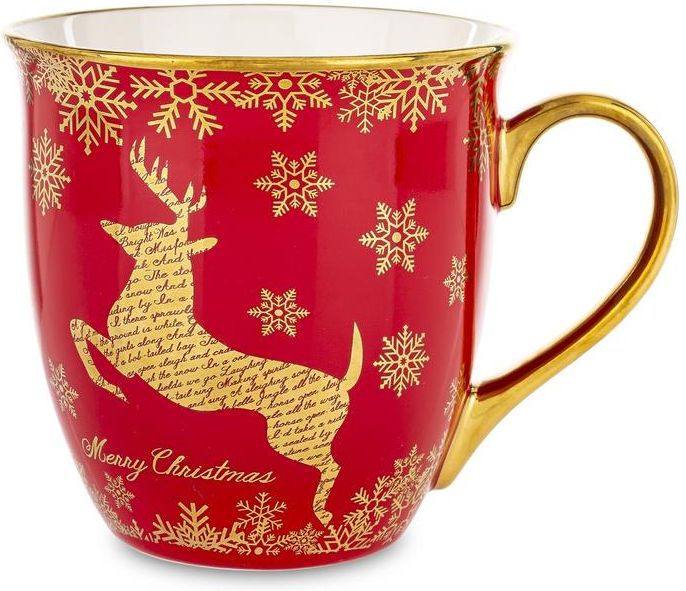 Kubek. Materiał: porcelana. Rozmiar: 11x15x11,5. Kolor: czerwony, złoty. Oryginalna porcelana użytkowa ozdobiona świątecznym wzorem. Wykonana ze stara...