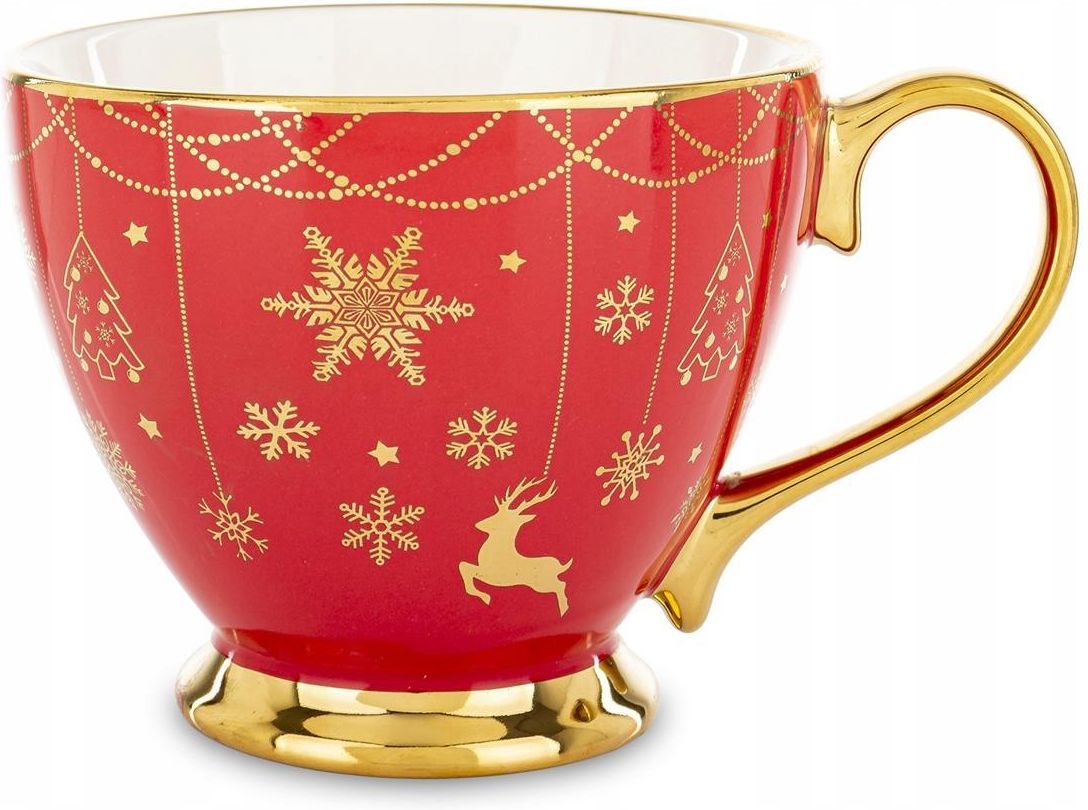 Świąteczny kubek porcelanowy 380 ml – czerwony ze złotymi dodatkami i motywem śnieżek ❄️ 182116 Stwórz bajkową atmosferę świąt dzięki eleganckiemu kubkowi porcelanowemu o pojemności 380 ml. To nie tylko praktyczny element codziennych rytuałów, ale także wyjątkowa ozdoba, która wprowadzi do Twojego …
