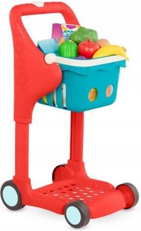 B. Toys muzyczny koszyk na zakupy B. Toys Melodie, dźwięki i światełka to coś co zachęci każdego dwulatka i trzylatka do zabawy wózekiem na zakupy Shop & Glow Toy Cart marki B.Toys. Umożliwi to im regulowana rączka w tej edukacyjnej zabawce. W zestawie maluchy odnajdą 13 kolorowych zabawek, artykułów spożywczych naśladujących te prawdziwe. Do koszyka mały wielbiciel zakupów może włożyć: mleko sojowe, paczkę płatków kukurydzianych, paczkę makaronu spaghetti, owoce i warzywa. W koszu jest miejsce na jedzenie do zabawy i ulubione pluszowe zwierzątko Twojego małego kupującego! Wyjmijcie kosz z regulowanego stelaża, aby swobodnie przenosić smakołyki na kuchenny blat i przygotujcie ulubiony posiłek dla swojej mamy. W zestawie: – wózek na kółkach, z muzyką i światłem – poręczny, wyjmowany koszyk ze składaną rączką – karton mleka zwykłego – karton mleka sojowego – opakowanie makaronu spaghetti – opakowanie płatków kukurydzianych – jajko – pomarańcza – cytryna – winogrona – jabłko – banan – papryka – brokuł – marchewka Wymiary zabawki: 32cm x 27cm x wys. 44-57cm Opakowanie, zredukowane do minimum i wykonane z materiałów z recyklingu, nadrukowano tuszami na bazie soi. W całości nadaje się do ponownego przetworzenia. Melodie, dźwięki i światełka to coś co zachęci każdego dwulatka i trzylatka do zabawy wózekiem na zakupy Shop & Glow Toy Cart marki B.Toys.