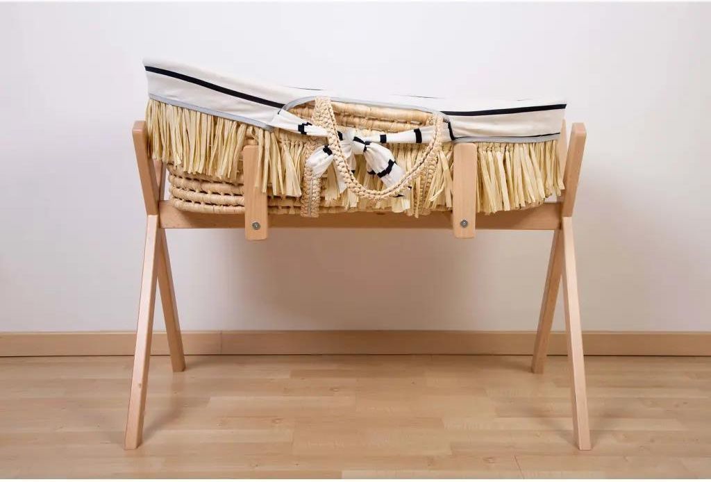 Kosz Mojżesza w stylu BOHO z materacykiem 3 cm i pokrowcem Childhome Wyjątkowy kosz, znany od wieków, stworzony z myślą o tym, aby już od pierwszych dni życia dziecko czuło się bezpiecznie i mogło towarzyszyć rodzicom w ciągu dnia lub nocy. Pozwala na spokojny sen, poczucie bezpieczeństwa dzięki możliwości przebywania blisko rodziców. Wykonany z miękkiej łuski kukurydzianej kosz mojżesza to świetne rozwiązanie w przypadku chęci posiadania maluszka przy sobie. Jest bardzo praktyczny - może stanowić przytulne gniazdko do spania dla noworodka, może stać w sypialni dziecka, rodziców lub w salonie, blisko domowników. Posłuży do ok 6 miesiąca życia i będzie dla dziecka jego małą, bezpieczną i znajomą przestrzenią. Kosz mojżeszowy Childhome Boho w podróży Kosz Mojżesza BOHO przydaje się także w podróży w pierwszych miesiącach życia dziecka. Zajmuje niewiele miejsca w bagażniku, dzięki czemu możesz zabrać go na wycieczkę do rodziny i przyjaciół. A dzięki temu maluszek będzie miał znane mu, jego łóżeczko a my ograniczymy w ten sposób stres dziecka w nowym miejscu. Kosz mojżesza BOHOjest nowym naturalnym koszem mojżesza marki Childhome.Charakteryzuje się nowym ciekawym wzorem z frędzelkami. Przypomina klimaty wakacyjne i egzotyczne, pasuję do wszystkich wnętrz. Kosz Mojżesza - ulubiony gadżet wszysytkich mam Kosz Mojżesza to jeden z ukochanych przez Mamy gadżetów wyprawkowych od kilku lat w Polsce i na świecie. Pomaga zorganizować życie w domu kiedy pojawia sie najmłodszy domownik. Dziecku daje poczucie bezpieczeństwa oraz miejsce przytulne i ciepłe jak w łonie mamy. Cechy Kosza Mojżesza Boho od Childhome: W zestawie z koszem - wygodny piankowy materacyk. Frędzelki zabezpieczone są na czas transportu sznureczkiem, który przed rozpoczęciem użytkowania należy usunąć i trzymać z dala od dziecka. Wykonany jest z naturlanych materiałów uważaj: Nie należy nosić kosza z dzieckiem w środku. Kosza Mojżesza nie należy używać, jeśli dziecko potrafi siedzieć. Kosz należy zawsze umieszczać na stabilnej i suchej nawierzchni lub w certyfikowanym stojaku marki Childhome. Uchwyty muszą być w pozycji poza wnętrzem kosza. Żaden z elementów kosza nie służy do zabawy. Specyfikacja techniczna Kosza z łuski kukurydzinej: Skład: Kosz: łuska kukurydziana, Materacyk: pokrowiec: 55% bawełna, 45% poliester, wypełnienie: 100 % poliester. Wymiary: 85 x 30 x 32 cm Maksymalne obciążenie: 8 kg. Czyszczenie: Czyść lekko wilgotną szmatką, osusz natychmiast. Zachęcamy do zakupu w naszym sklepie pokrowca oraz stylowego stojaka do kosza Mojżesza, dostępnego tutaj. Nasze pokrowce do Koszy Mojżesza wykonane są w 100% z bawełny. Dzięki nim drzemka w koszu, jest przytulna i bezpieczna. Pokrowce dostępne są w różnych kolorach i pasują na wszystkie kosze z naszej kolekcji. Wybierz swój ulubiony wzór oraz kolor i dopasuj Kosz Mojżesza do charakteru swojego mieszkania.