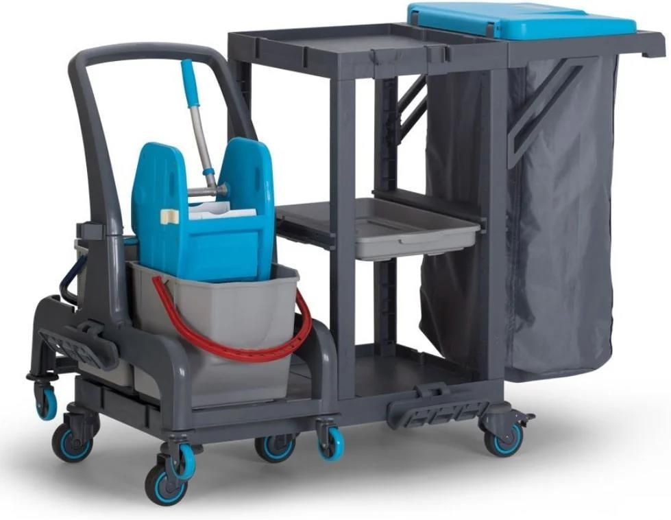 Doskonała funkcjonalność i niezawodność Fantom PROCART 73101 to idealny towarzysz w każdym miejscu pracy, oferując wybitną efektywność dzięki mocnej konstrukcji z polipropylenu. Jego wyjątkowa odporność i łatwość w utrzymaniu porządku czynią go pierwszym wyborem dla profesjonalistów, którzy cenią sobie solidność. Ergonomiczne rozwiązania dla wygody użytkowania Z myślą o maksymalnej wygodzie i produktywności, wózek serwisowy PROCART 73101 posiada ciche, łatwo sterowalne koła, które ułatwiają przemieszczanie się po różnego rodzaju podłożach, sprawiając, że praca jest łatwa i przyjemna. Lekka konstrukcja w połączeniu z amortyzowanymi kołami, zapewnia intuicyjną obsługę i komfort użytkowania. Kompleksowe rozwiązanie sprzątające Zakup Fantom PROCART 73101 to inwestycja nie tylko w wózek, ale w kompletny system przeznaczony do utrzymania czystości i segregacji odpadów. W skład zestawu wchodzi PROCART JET 720S oraz system mocowań PROCART AKT 550A, co czyni wózek wszechstronnym narzędziem, umożliwiającym efektywną organizację pracy na różnorodnych powierzchniach.. Wyposażenie wózka serwisowego Fantom PROCART 73101: Półki x 3 PROCART JET 720S - wózek z wiaderkami x 2 po 25 l, prasa do wyciskania mopa Worek do zbierania odpadów 1 x 120 l Systemem mocowań PROCART AKT 550A - uchwyt mopa, podstawa mopa, wieszak Koła – 5 skrętnych o średnicy 100 mm w tym 2 z hamulcem Uchwyt do pchania
