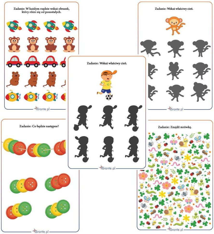 Dla kogo? Karty pracy – Łamigłówki (dla uczniów klas 1-3) Przed Tobą 35 kart przeznaczonych dla uczniów edukacji wczesnoszkolnej. Poziom zawartych w nich zadań jest zróżnicowany. Wykorzystasz je w pracy z młodszymi i nieco starszymi dziećmi. Łamigłówki są wielotematyczne. Zawierają treści matematyczne i językowe. Doskonalą zdolności rachunkowe oraz utrwalają zapis niektórych wyrazów. Dziecko trenuje podstawowe umiejętności – czytanie i pisanie. Na dodatek świetnie się przy tym bawi, bo karty są kolorowe i przyjemne w odbiorze. Nie musisz ćwiczyć ręki piszącej najmłodszych cały czas tak samo. Możesz usprawniać ją poprzez różne ćwiczenia grafomotoryczne. Takie znajdziesz właśnie w zestawie Łamigłówek dla uczniów klas 1-3. Dziecko będzie miało pewniejsze ruchy dłoni i nadgarstka oraz nauczy się kontrolować mięśnie. Dzięki temu zacznie staranniej pisać. Praca na materiale słowno-obrazowym wpływa pozytywnie na układ nerwowy. Dziecko otrzymuje bowiem różne bodźce, które musi przetworzyć i przyswoić. Staje się bardziej spostrzegawcze oraz lepiej zapamiętuje poznaną treść. Karty pracy w formacie .pdf do samodzielnego wydrukowania zostaną przesłane na podany w zamówieniu adres e-mail. [ikony-produktu-opisy] Dlaczego warto? Rozwijają kompetencje matematyczne Łamigłówki z zadaniami matematycznymi zachęcają do liczenia i segregowania. Wykonując ćwiczenia, dziecko lepiej pojmuje pojęcie liczby oraz zależność między całością i częścią. Wspomagają spostrzegawczość Zabawa w szukanie różnic, podobieństw czy wyodrębnianie elementów to świetny trening percepcji wzrokowej. Najmłodsi stają się bystrzejsi i bardziej spostrzegawczy. Uczą logicznego myślenia W trakcie poszukiwania właściwych rozwiązań, dziecko uczy się logicznego myślenia. Rozumie też ciąg przyczynowo-skutkowy wydarzeń. Doskonalą zdolności motoryczne Dzięki kartom pracy dziecko usprawnia rękę piszącą. Zadania wymagają prowadzenia ręki po śladzie, kopiowania czy zakreślania. Taka aktywność pozwala ćwiczyć mięśnie i ruch nadgarstka, co poprawia zdolności grafomotoryczne najmłodszych. Uczą poprzez zabawę Wykonując ćwiczenia z kart pracy, dziecko utrwala znane mu pojęcia. Dodatkowo poszerza zasób słownictwa i wzbogaca wiedzę o świecie. Wszystko odbywa się w przyjemnej dla dziecka formie zabawy. Główne informacje Sugerujemy zalaminowanie wydrukowanych kart, tak aby można było wykorzystywać je wielokrotnie. Zabawa z markerami suchościeralnymi przyniesie najmłodszym wiele frajdy. Wiek: 7-9 lat