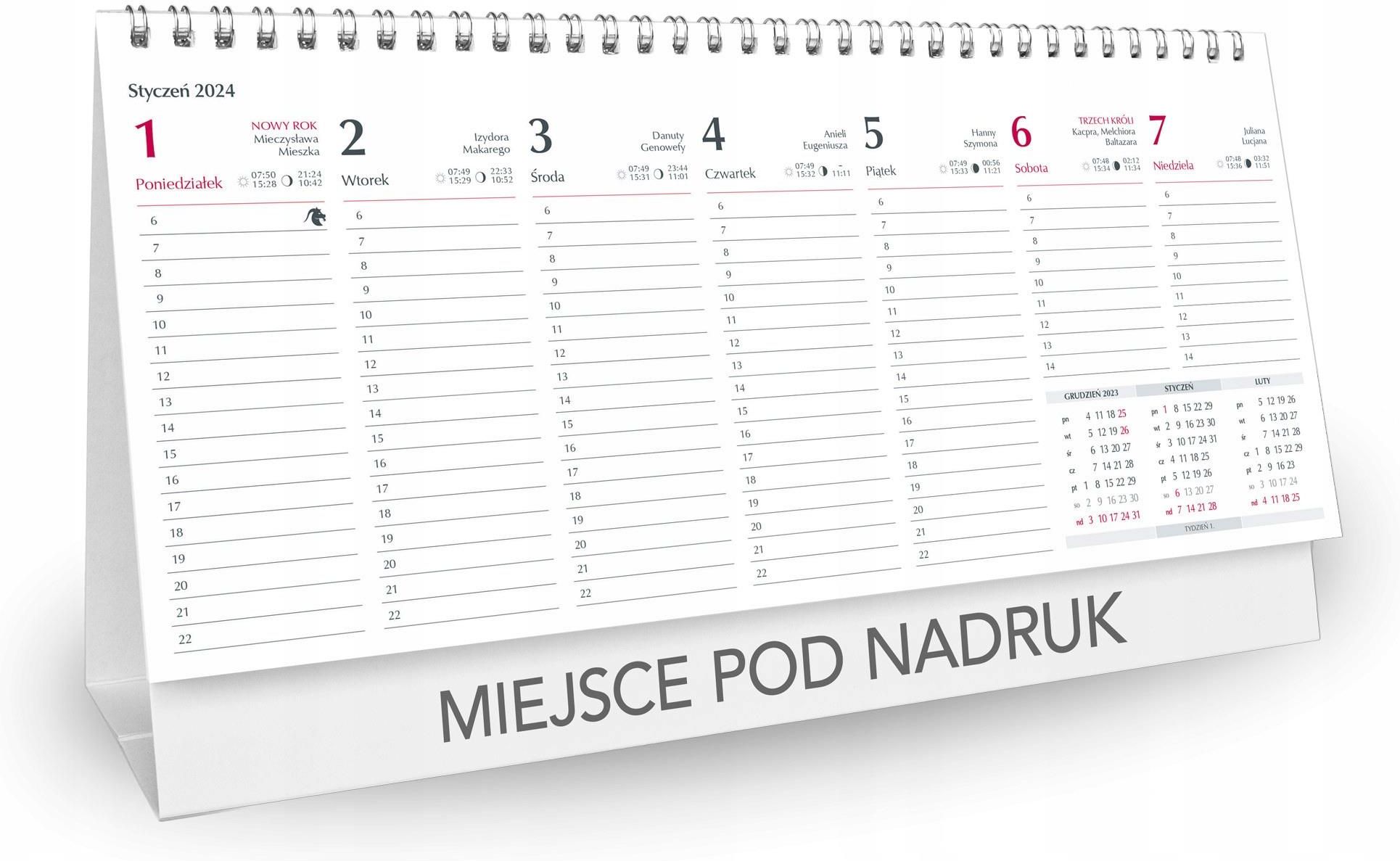Kalendarz Biurkowy Poziomy 2024 Tygodniowy Na Spirali Duży Pyskowice
