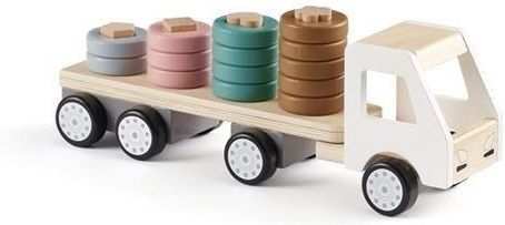Kids Concept Aiden Ciężarówka z Klockami Numer kat. 1000427 Przyczepa drewnianej ciężarówki do sortowania posiada cztery kołki w różnych kształtach w których można układać pierścienie na różnych wysokościach i kombinacjach. Drewniana ciężarówka z klockami o różnych kształtach łączy w sobie …