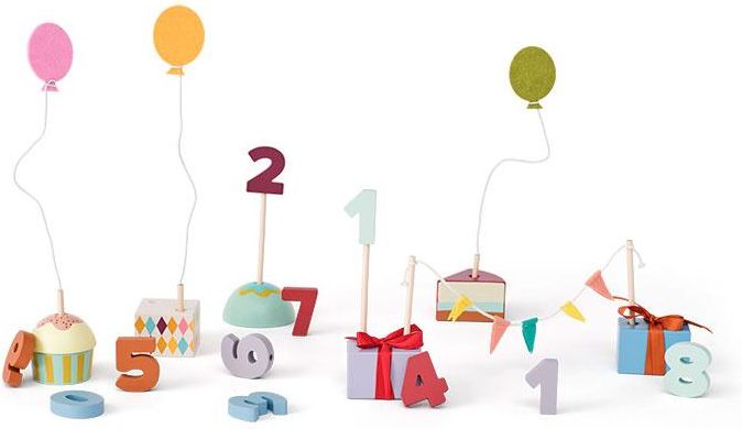 Niech stół urodzinowy stanie się centrum uwagi! Niezależnie od tego, czy to 5. czy 50. urodziny, drewniany zestaw dekoracyjny sprawi, że każda uroczystość będzie jeszcze bardziej wyjątkowa. W zestawie znajdziesz pięć drewnianych dekoracji w kształcie prezentów, tortów i babeczek – każda z miejscem na umieszczenie cyfry oznaczającej wiek jubilata. W komplecie drewniane cyfry od 0 do 9 oraz dodatkowa cyfra 1, dzięki czemu zestaw posłuży na wiele kolejnych lat świętowania. Dwa filcowe baloniki na metalowych drucikach dodają całości lekkości i uroku. Ustawianie dekoracji na stole to część zabawy, która tworzy niepowtarzalną atmosferę każdej uroczystości. To zestaw, który rośnie razem z rodziną i zostaje z Wami na lata. Zestaw zawiera 5x drewniana dekoracja: prezenty, torty, babeczki Cyfry od 0 do 9 oraz dodatkowa cyfra 1 2x filcowy balonik na metalowym druciku Rekomendowany wiek Produkt dekoracyjny. Nie jest zabawką. Certyfikaty i materiały Prezenty, torty, babeczki, cyfry – MDF z certyfikatem FSC Patyczki – drewno brzozowe z certyfikatem FSC Baloniki – poliester, żelazo Girlanda – poliester, bawełna Farby na bazie wody Certyfikat CE Parametry Wymiary prezentu: Długość: 7 cm Szerokość: 5 cm Wysokość: 5 cm Wymiary babeczki: Długość: 7 cm Szerokość: 7 cm Wysokość: 6,5 cm Wymiary tortu: Długość: 7 cm Szerokość: 7 cm Wysokość: 7,5 cm Wymiary cyfr: Długość: 4,5 cm Szerokość: 5 cm Wysokość: 1 cm Wysokość balonika: 33 cm Waga: 844 g Kolor: wielokolorowy Instrukcja czyszczenia / informacje dodatkowe Czyścić wilgotną ściereczką. Wytrzeć do sucha. Regularnie sprawdzać stan wszystkich elementów.