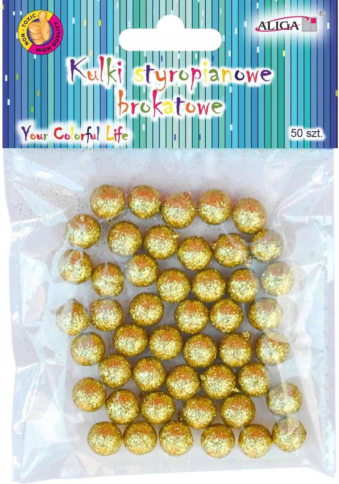 Złote kulki styropianowe brokatowe 10mm, opakowanie 50 sztuk ALIGA Złote kulki styropianowe brokatowe o średnicy 10 mm to doskonały wybór dla każdego, kto pragnie dodać wyjątkowego blasku do swoich projektów artystycznych oraz dekoracyjnych. W opakowaniu znajduje się 50 sztuk, co sprawia, że produkt jest nie tylko estetyczny, ale również praktyczny w użyciu. Kulki te wykonane są z wysokiej jakości styropianu, co zapewnia im lekkość oraz łatwość w obróbce. Złote kulki są idealne do różnorodnych zastosowań, takich jak tworzenie ozdobnych kompozycji, dekorowanie zaproszeń, czy też wykorzystywanie w pracach scrapbookowych. Ich intensywne złote wykończenie i brokatowy efekt sprawiają, że każde dzieło zyskuje niezwykły charakter. Dzięki swojej uniwersalnej formie, kulki te można łatwo wkomponować w różne style dekoracji, od klasycznych po nowoczesne. Produkt jest również doskonałym rozwiązaniem na różnorodne okazje, takie jak wesela, urodziny, czy inne celebracje. Dzięki swojej kolorystyce perfekcyjnie wpisuje się w trendy dekoratorskie, a także może stanowić uzupełnienie większych aranżacji. Zainwestuj w złote kulki styropianowe, aby Twoje projekty zyskały na wyjątkowości i niepowtarzalności.