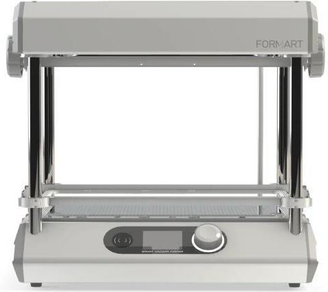 Termoformierka My Yard to jedna z termofomierek o największym polu roboczym (47x27 cm) dostępnych na rynku. Termoformierka My Yard 2 to urządzenie, które z powodzeniem sprawdzi się zarówno do profesjonalnego zastosowania, jak i dla hobbystów. Urządzenie do termoformowania My Yard cechuje: wbudowana pompa próżniowa, pozwalająca na termoformowanie detali bez pominięcia nawet najprecyzyjniejszych szczegółów możliwość pracy w modułach "simple mode" (proste i szybkie rozpoczęcie pracy z urządzeniem)/advanced mode (dedykowanym dla profesjonalistów) szeroka gama arkuszy do termoformowania (możliwość stosowania dedykowanych formatek z NFC, jak i każdych, dowolnych) wysokiej klasy system nagrzewania, pozwalający na 3 razy szybsze nagrzewanie urządzenia i zarazem równomierne nagrzewanie powierzchni wbudowana funkcja osuszania, pozwalająca na kontrolowanie parametrów dla różnych rodzajów arkuszy stosowanych w termoformierce Urządzenie Formart posiada wbudowany sygnał dźwiękowy, informujący o zakończeniu etapu nagrzewania urządzenia i gotowości termoformierki do pracy. Dodatkowo urządzenie posiada możliwość przełączania 4 rozmiarów arkuszy, dzięki czemu arkusze dopasować można do wielkości pracy. W zestawie z termoformierką dostarczane są: 30 arkuszy formatek HIPS (30x50 cm) zestaw umożliwiający modyfikację rozmiaru formatek stosowanych w urządzeniu kabel USB rękawice ochronne do pracy z urządzeniem zestaw podstawowych narzędzi do pracy z termoformierką testowy element do termoformowania