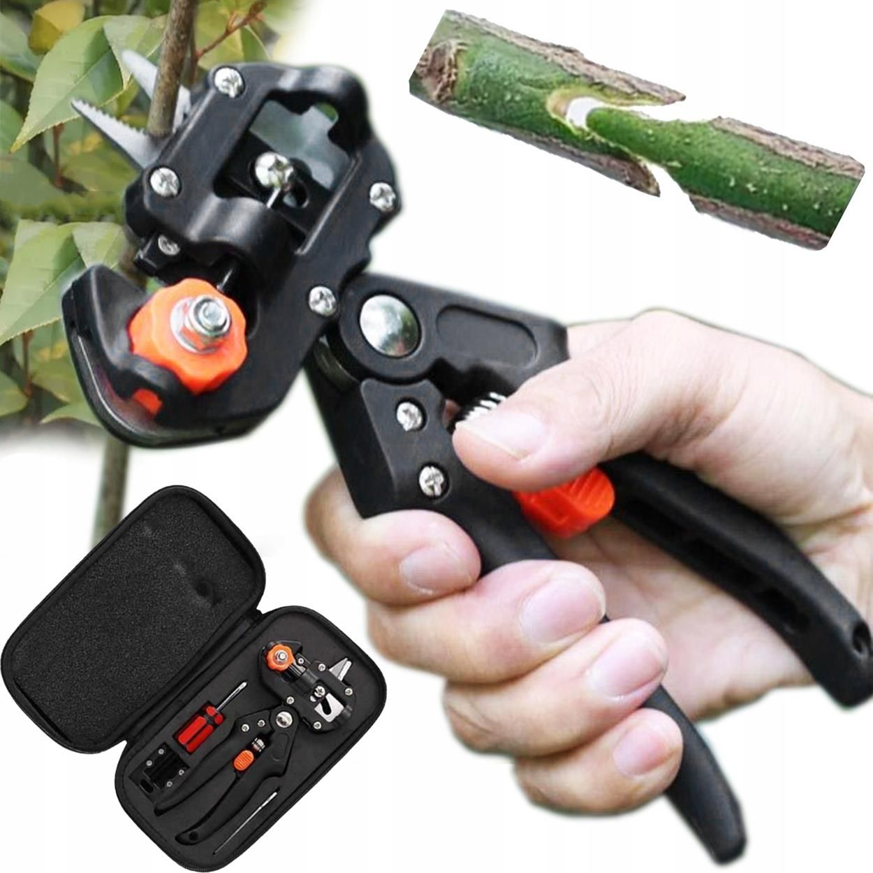 NOŻYCE OGRODOWE RĘCZNE DO GAŁĘZI KRZEWÓW NOŻYCE DO CIĘCIA 4 RÓŻNE TECHNIKI Wszechstronne nożyce ogrodowe – precyzja i wygoda w jednym! 4 różne techniki cięcia – dostosuj sposób pracy do rodzaju gałęzi i roślin. Wytrzymałe ostrza – wykonane z wysokiej jakości stali, gwarantują czyste i precyzyjne cięcie. Ergonomiczne uchwyty – wygodne, antypoślizgowe rączki zapewniają komfort nawet przy dłuższym użytkowaniu. Lekka, a zarazem solidna konstrukcja – minimalizuje zmęczenie rąk i ułatwia pracę w ogrodzie. PARAMETRY TECHNICZNE Materiał ostrzy: Wysokiej jakości stal nierdzewna Długość nożyc: Optymalna do precyzyjnego cięcia Rodzaj cięcia: 4 różne techniki dla maksymalnej efektywności Uchwyty: Antypoślizgowe, ergonomiczne Materiał: wysokiej jakości stal nierdzewna, tworzywo ABS Nożyczki do szczepienia z 3 różnymi ostrzami Odpowiedne do przycinania i szczepienia drzewek, krzewów lub winorośli 3 końcówki do różnych rodzajów ostrzy (V, U, Ω) Wymiary: 21 x 10 x 2,5 cm Kolor: czarno-pomarańczowy OPAKOWANIE ZAWIERA 1x Nożyce ogrodowe ręczne 1x Etui ochronne z akcesoriami Zapewnij swojemu ogrodowi perfekcyjny wygląd – wybierz solidne i precyzyjne nożyce! Etui ochronne z akcesoriami
