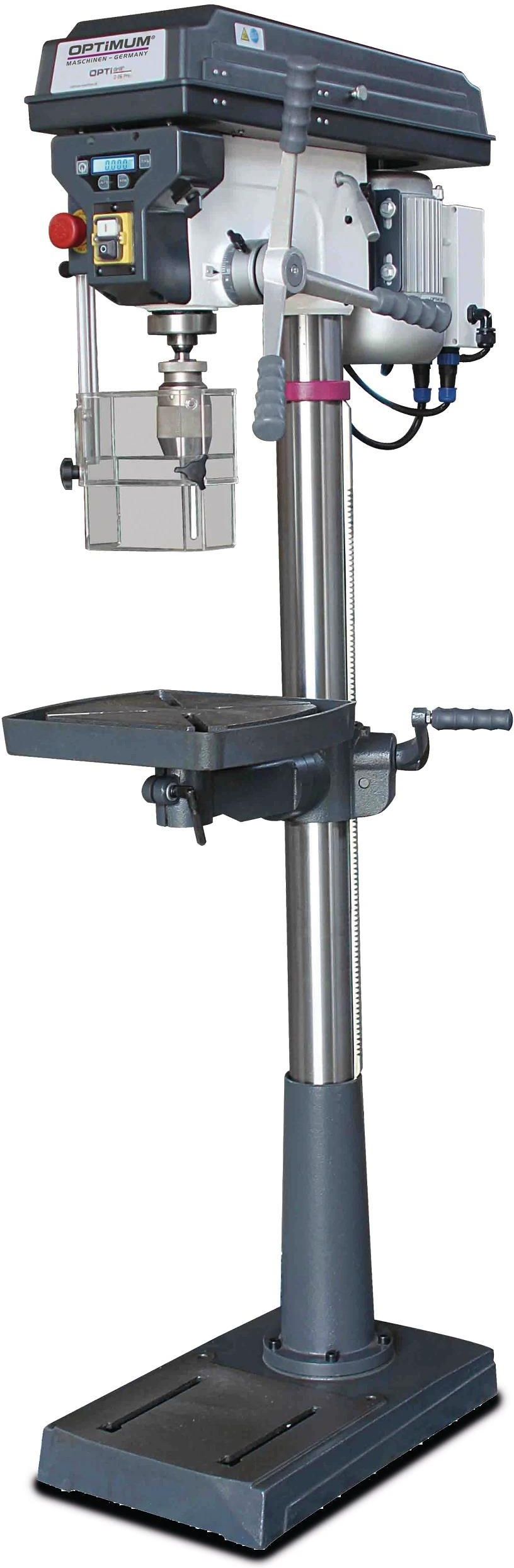 Wiertarka Kolumnowa z Napędem Pasowym OPTIdrill D 26 Pro 750W 400V - Profesjonalne narzędzie o wyjątkowej precyzji i trwałości Wiertarka kolumnowa OPTIdrill D 26 Pro to zaawansowane urządzenie stworzone z myślą o profesjonalnych użytkownikach, którzy oczekują maksymalnej precyzji, niezawodności oraz bezpieczeństwa. Dzięki solidnej konstrukcji oraz innowacyjnym rozwiązaniom, wiertarka ta sprawdzi się w najbardziej wymagających zastosowaniach. Kluczowe cechy produktu Silnik przemysłowy Mocny 750W silnik przemysłowy zapewnia niezawodną i efektywną pracę, dostosowaną do intensywnych zadań. Zaawansowane systemy bezpieczeństwa Wyłącznik bezpieczeństwa IP 54: Niezawodny, łatwy w obsłudze, zapewnia ochronę operatora. Oddzielny wyłącznik awaryjny: Umożliwia natychmiastowe zatrzymanie urządzenia w sytuacjach awaryjnych. Osłona pasa klinowego z wyłącznikiem bezpieczeństwa: Zwiększa bezpieczeństwo pracy przez ochronę operatora. Elektronika bezpieczeństwa 24 V DC: Gwarantuje bezpieczne użytkowanie maszyny. Precyzja i kontrola Cyfrowy wskaźnik głębokości wiercenia i prędkości obrotowej: Umożliwia dokładne monitorowanie parametrów pracy, co przekłada się na precyzyjne wiercenie. Wysokiej jakości uchwyt bezkluczykowy: Umożliwia szybką wymianę narzędzi bez użycia dodatkowych kluczy. Precyzyjny otwór wrzeciona: Zapewnia współosiowość poniżej 0,02 mm, co gwarantuje maksymalną dokładność podczas pracy. Wrzeciono wiertarskie z precyzyjnymi łożyskami kulkowymi: Zwiększa trwałość i stabilność maszyny. Stabilność i wygoda Precyzyjnie obrobiony stół wiertarski: Wyposażony w ukośne rowki teowe oraz kanał odprowadzający wodę chłodzącą, co zapewnia stabilność i precyzję pracy. Jednoczęściowa dźwignia pinoli z uchwytami Softgrip: Poprawia komfort użytkowania oraz precyzję operacji. Duży ekran ochronny z regulacją wysokości: Zabezpiecza operatora, umożliwiając dostosowanie osłony do różnych zadań. Masywna płyta podstawowa z rowkami teowymi: Solidna konstrukcja z mocnym użebrowaniem zapewnia stabilność całej maszyny. Dodatkowe wyposażenie i funkcje zaawansowane Wysokiej jakości pasek GATES: Gwarantuje niezawodność napędu oraz długą żywotność maszyny, dostępny w modelach od D 23 Pro. Zasilanie 400 V: Wersja D 26 Pro dostępna z zasilaniem 400 V, co pozwala na wykorzystanie w bardziej zaawansowanych środowiskach. Funkcja do przodu/do tyłu: Obecna w modelu D 33 Pro, umożliwia wszechstronne operacje wiercenia, przydatna w różnych sytuacjach. Masywna, duża płyta podstawowa z rowkami teowymi: Konstrukcja o wzmocnionym użebrowaniu zapewnia stabilność i wytrzymałość nawet w najbardziej wymagających zadaniach. Dane techniczne Wymiary i waga Długość produktu: ok. 715 mm Szerokość/głębokość produktu: ok. 360 mm Wysokość produktu: ok. 1640 mm Średnica kolumny: 80 mm Waga netto: ok. 85 kg Wydajność wiercenia Maksymalna zdolność wiercenia w stali (S235JR): 25 mm Wydajność wiercenia ciągłego w stali (S235JR): 20 mm Stół wiertarski Powierzchnia robocza stołu: 330 mm x 290 mm Rozmiar T-slotów: 14 mm Obrót stołu: 360° Nachylenie stołu: 45° Maksymalna odległość wrzeciono-stół: 720 mm Zakres prędkości Prędkość obrotowa: od 200 do 2440 min¯¹ Liczba zakresów prędkości: 12 Dane elektryczne Moc silnika napędowego: 0,75 kW Napięcie zasilania: 400 V Częstotliwość sieci: 50 Hz Podstawa maszyny Maksymalna odległość wrzeciono-stopa: 1230 mm Powierzchnia robocza podstawy: 385 mm x 260 mm Rozmiar T-slotów podstawy: 16 mm Liczba T-slotów: 2 Odległość T-slotów: 170 mm Wrzeciono Uderzenie rękawa: 85 mm Uchwyt wrzeciona: MT 3 Zaproszenie: 210 mm Zawartość zestawu Uchwyt bezkluczykowy 1 - 16 mm Stożek Morse'a MK 3 / B16 Nakrętki teowe Wiertarka kolumnowa D 26 Pro to narzędzie, które oferuje precyzję, trwałość i bezpieczeństwo na najwyższym poziomie. Dzięki zaawansowanym funkcjom i solidnej konstrukcji jest idealnym wyborem dla profesjonalistów poszukujących niezawodnego sprzętu do zadań wymagających precyzyjnego wiercenia.