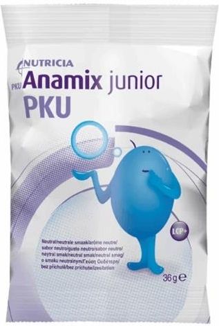 Żywność specjalnego przeznaczenia medycznego PKU Anamix Junior o smaku neutralnym zawiera w swoim składzie: mieszaninę egzogennych i endogennych aminokwasów, witaminy i minerały, błonnik, węglowodany, tłuszcz (w tym DHA). PKU Anamix Junior o smaku neutralnym jest stosowany w leczeniu fenyloketonurii (PKU) u dzieci. Produkt jest przeznaczony dla dzieci od 1. do 10. roku życia. Zawartość jednej saszetki (36 g) należy rozpuścić w 100 ml wody. Produkty zawiera cukry i substancję słodzącą.