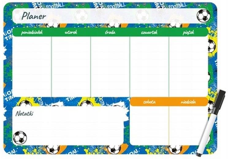 Planer Suchościeralny Magnetyczny 25 X 35Cm Biurfol Z Nadrukiem Football Układ Tygodniowy Poziomy Pm 02 34 Pyskowice