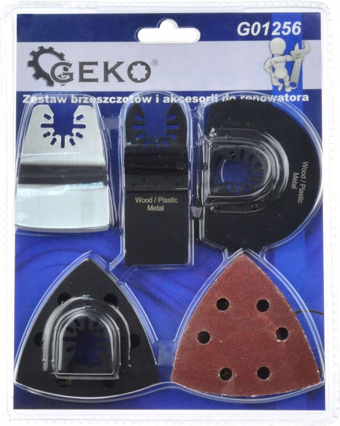 Brzeszczoty i akcesoria do renowatora 6 el. G01256 Zawartość zestawu: Zestaw papierów ściernych Delta: #60 x 5 szt., #80 x 5 szt. Tarcza segmentowa 85 mm 140 zębów - do drewna, metalu i plastiku Brzeszczot HCS do cięcia wgłębnego 35x40 mm 28 zębów - do drewna, metalu i plastiku Skrobak 52 mm Płyta szlifierska Delta 80mm