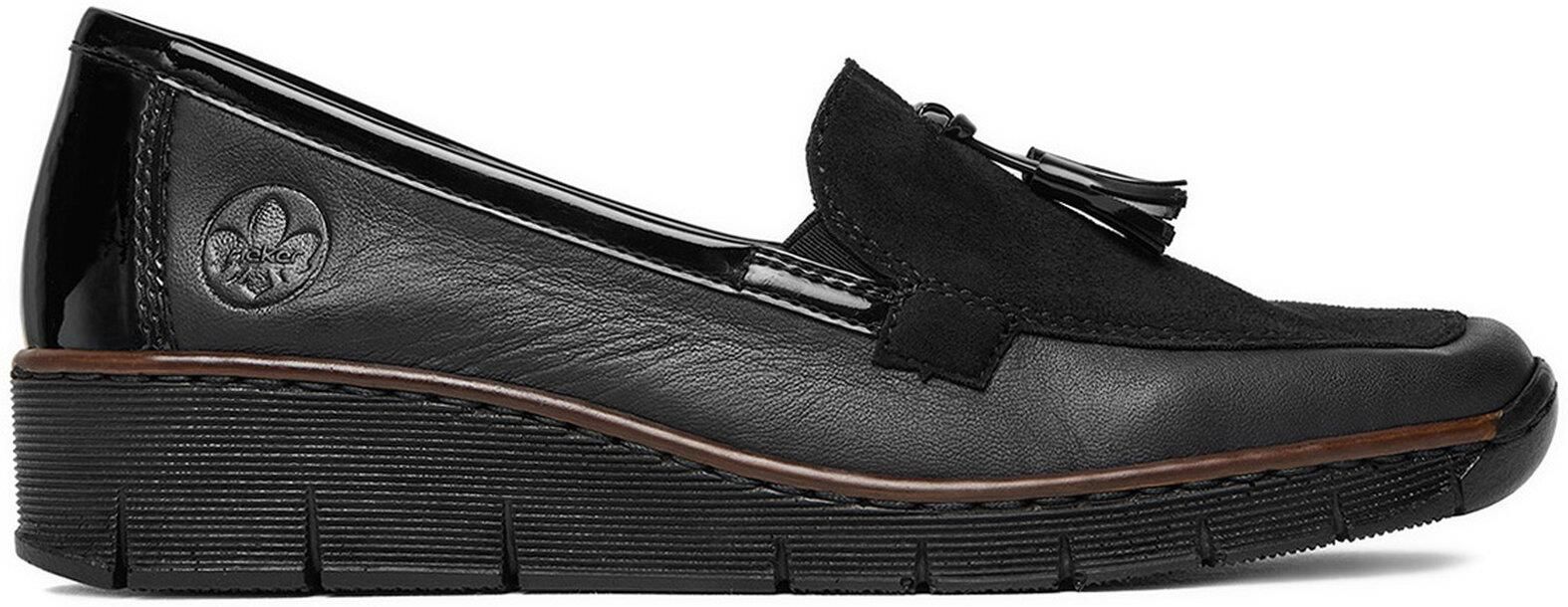 Dodaj odrobinę elegancji do swojej codziennej garderoby z loafersami marki Rieker! Wykonane z wysokiej jakości skóry, te buty łączą klasykę z nowoczesnym akcentem w postaci ozdobnych frędzli, które dodają im niepowtarzalnego charakteru. Idealne na co dzień, będą doskonałym uzupełnieniem zarówno casualowych, jak i bardziej formalnych stylizacji. Postaw na styl i komfort, wybierając te wyjątkowe loafersy, które podkreślą Twój indywidualny gust! Od ponad stu lat marka Rieker oferuje niezwykle komfortowe i trwałe obuwie, które powstaje z myślą o zdrowiu stóp. Dzięki wieloletniemu doświadczeniu w produkcji obuwia, ta niemiecka marka doskonale potrafi łączyć wygodę ze stylem, dlatego w ofercie znajdziesz buty w modnych, oryginalnych fasonach, które każdemu przypadną do gustu. Buty Rieker tworzone są z materiałów wysokiej jakości, przez co odznaczają się wyjątkową elastycznością i trwałością, ale też lekkością. Ponadto w obuwiu stosuje się szerszą formę zapewniającą odpowiednią stabilizację stopy, specjalne podeszwy absorbujące wstrząsy oraz odciążające stawy i kręgosłup, a także wyjmowane wkładki z pianki Memory Foam, która idealnie dopasowuje się do kształtu stóp. To doskonałe produkty dla tych, którzy ponad wszystko cenią sobie komfort. Przekonaj się!