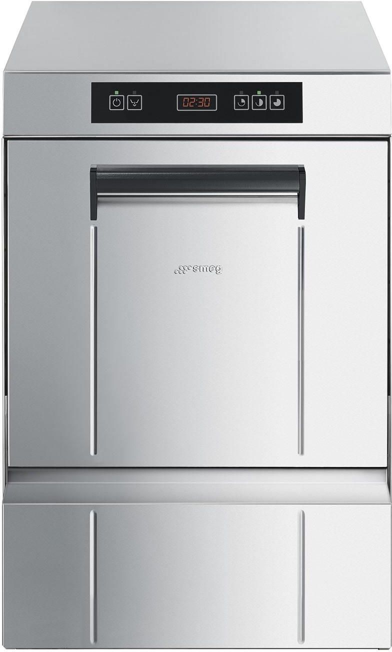 Zmywarka gastronomiczna do szkła SMEG Ecoline idealnie sprawdzi się w kawiarniach i pubach. Urządzenie posiada wbudowany dozownik płynu myjącego oraz dozownik płynu nabłyszczającego. Zmywarka posiada pompę spustową z potrójnym filtrem. Sterowanie elektroniczne z funkcją soft start oraz termostop. Zmywarka posiada też funkcję automatyczny start, którą można w dowolnej chwili włączyć (domyślnie wyłączona). Ponadto w urządzeniu zastosowano system płukania HTR (bojler atmosferyczny i pompa płukania). W zestawie 2 kosze o wymiarach 40x40 cm oraz kosz na sztućce. Tłoczona komora zmywarki wykonana jest z 1-wartwowej stali nierdzewnej kwasoodpornej AISI 304. Tylny panel zmywarki wykonany ze stali galwanizowanej. Drzwi posiadają podwójne ścianki oraz uszczelkę zamontowaną na górnej krawędzi. Filtr zbiornika wykonany jest z tworzywa sztucznego. Ramię myjące wykonane ze stali nierdzewnej, a ramię płuczące z tworzywa sztucznego. We wnętrzu zostały wytłoczone prowadnice na kosz do zmywarki. Zbiornik zmywarki posiada pojemność 8 litrów, a za jego nagrzewanie odpowiada grzałka o mocy 2 kW. Bojler na wodę o pojemności 4 litrów posiada wbudowaną grzałkę o mocy 2,7 kW. Do zmywarki dołączone są także wąż doprowadzający wodę oraz wąż spustowy. Urządzenie posiada regulowane nóżki +/- 2,5 cm. Zmywarka posiada 3 programy mycia odpowiednio: 90/150/360 sekund oraz program spustowy i automatycznego czyszczenia. Dodatkowo zmywarka posiada program świeżej wody oraz program dodatkowego płukania. Wydajność orientacyjna zmywarki to 40 koszy/h. Maksymalna wysokość naczyń wkładanych do komory wynosi 33 cm. Uwaga: Mycie w zmywarce gastronomicznej może się odbywać wyłącznie przy użyciu profesjonalnych środków chemicznych przeznaczonych do zmywarek przemysłowych. .Produkt na zamówienie. Dla Podwyższoną jakość mycia oraz ochronę przed osadzaniem się kamienia zapewni zamontowanie uzdatniacza wody. Czas oczekiwania określany przy składaniu zamówienia.