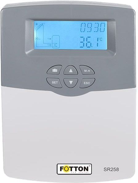 Sterownik solarny SR258 230V AC z PWM do systemów z kolektorami słonecznymi płaskimi/próżniowymi Przedstawiamy Państwu zaawansowany inteligentny sterownik do układów solarnych z kolektorami słonecznymi, umożliwiający regulację i programowanie wszystkich podstawowych parametrów pracy, nie tylko kolektora z zasobnikiem ale także pompy cyrkulacyjnej instalacji np. CWU. Sterownik posiada wszystkie funkcje zabezpieczające, w tym zabezpieczenie kolektora. Urządzenie posiada wiele funkcji dostępnych wyłącznie w najwyższej klasy sterownikach m.in.: Dane techniczne: Obudowa: Tworzywo sztuczne ABS Stopień ochrony: IP41 Montaż: Naścienny Obsługa: 6 przycisków na przedniej pokrywie. Dokładność pomiaru temperatury: ± 0,1°C Zakres pomiaru temperatury kolektora: -10°C ~220°C Zakres pomiaru temperatury zbiornika: 0°C ~110°C Wymiary regulatora: 187 mm x 128 mm x 46 mm Zasilanie: AC100-240 V, 50-60 Hz Pobór mocy: < 2,5 W Znamionowe napięcie impulsowe: 2,5 kV Dopuszczalna moc pompy: Możliwość podłączenia 3 pomp Dopuszczalna moc HK (ogrzewania rezerwowego): 1 szt. ˂1500 W Wejścia: 5 czujników 1 szt.* czujnik Pt1000 (≤500°C) do kolektora (przewód silikonowy ≤280°C) 4 szt.* czujnik NTC10K B3950 (≤135°C) do zbiornika (przewód PVC ≤105°C) 1* przepływomierz elektronowy FRT z obrotowym wirnikiem Wyjścia: 4 przekaźniki do pompy obiegowej i ogrzewania rezerwowego 2* przekaźnik elektromagnetyczny, prąd maks. 1 A 1* przekaźnik półprzewodnikowy, prąd maks. 1 A 1* przekaźnik elektromagnetyczny, prąd maks. 10 A 1* wyjście PWM o zmiennej częstotliwości (przełączane 0-10 V) Temperatura otoczenia: -10°C ~ 50°C. Stopień wodoodporności: IP41 Główne funkcje DATA ---Ustawienie daty Ogrzewanie czasowe ---ogrzewanie rezerwowe Obieg ---cyrkulacja ciepłej wody ŁADOWANIE ---Ustawienia Ładowanie zbiornika KOL --- Kolektor POMPA ---Tryb sterowania pompą ON/OFF lub PWM PWM --- płynne sterowanie pracą pompy za pomocą PWM CHŁODZENIE ---Funkcja chłodzenia AUX ---Funkcja pomocnicza MAN ---Tryb ręczny BLPR ---Funkcja zabezpieczenia przed blokadą OTDI ---Funkcja dezynfekcji termicznej FS ---Wybór typu przepływomierza. JEDNOSTKA ---Przełącznik jednostki C-F RST ---ustawienie fabryczne PASS ---ustawienie hasła Funkcja urlopowa Ochrona ekranu Zabezpieczenie przed usterkami Sprawdzanie usterek Dostawa zawiera: Listadostawy 1 * Sterownik solarny SR258 1 * Torba z akcesoriami do sterownika 1 * Instrukcja obsługi j.ang papier; j. pol PDF 1 * PT1000 temperatura czujnik (φ6*50mm, długość kabla 1,5 metra) 2 * NTC10K temperatura czujnik (φ6*50mm, długość kabla 3 metry) 1* Przewód zasilający ZAPRASZAMY