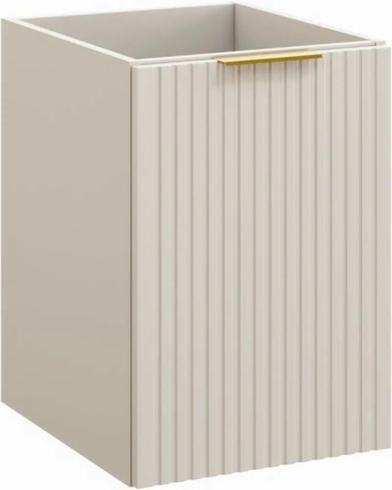 Szafka łazienkowa z koszem na pranie w rozmiarze 40 cm w kolorze kaszmirowym ADEL CASHMERE 81-40-1DK Szerokość:40 Wysokość:57 Głębokość:46 Szafka pod blat o szerokości 40 cm z koszem na pranie z kolekcji Adel kaszmir łączy elegancję z funkcjonalnością. Charakteryzuje się klasycznymi proporcjami brył i wyjątkowymi, ryflowanymi frontami. Uchwyty w trzech kolorach - złoty połysk, chrom połysk oraz czarny mat - nadają jej stylowy wygląd. Szafka z koszem na pranie o pojemności 44 litrów oferuje dużo miejsca, utrzymując porządek. Wykonana z trwałych materiałów takich jak płyta MDF i płyta laminowana, zapewnia solidność i długotrwałe użytkowanie. Meble zostały zaprojektowane z myślą o maksymalnej funkcjonalności, spełniając oczekiwania nawet najbardziej wymagających użytkowników. Każdy element tego mebla wyróżnia się starannym wykonaniem i dbałością o detale, gwarantując estetyczny wygląd oraz długotrwałą satysfakcję z użytkowania, popartą 2 latami gwarancji. Precyzyjnie docięte elementy idealnie pasują do pozostałych, zapewniając stabilność i znakomitą prezentację mebla. Maszynowo oklejona płyta MDF w miejscach cięć gwarantuje trwałość i estetykę. Meble łazienkowe firmy Comad są dostarczane w paczkach do samodzielnego montażu, który jest prosty i nie wymaga specjalistycznej wiedzy. Kolekcja ADEL w nowej, Kaszmirowej odsłonie to klasyczne proporcje brył połączone z wyjątkowymi frezowanymi pionowo frontami. Dzięki takiemu zestawieniu meble z tej kolekcji są uniwersalne i idealnie sprawdzają się zarówno w nowoczesnych, jak i klasycznych aranżacjach, a ich wysoka funkcjonalność zapewni komfort nawet najbardziej wymagającym użytkownikom. Kolekcja składa się z wiszących szafek pod umywalkowych w rozmiarach 40cm, 60 cm i 80 cm, słupka wysokiego oraz blatów w rozmiarach 60 cm, 80 cm i 120 cm, co daje nam możliwość tworzenia zarówno mniejszych, jak i większych zestawów. Zaletą tej kolekcji jest również możliwość wyboru koloru uchwytów, ponieważ w zestawie do każdej szafki są trzy opcje kolorystyczne: złoty połysk, chrom połysk oraz czarny mat. Dzięki temu możemy dopasować kolor uchwytów do armatury, luster w różnych kolorach ram lub w przyszłości odświeżyć wygląd mebli. Wysokość: 57 Szerokość: 40 Głębokość: 46 Kolor korpusu: kaszmir Kolor front: kaszmir Materiał korpusu: płyta MDF laminnowana Materiał frontu: płyta MDF laminowana Styl: Nowoczesny Zawiasy: Puszkowe z cichym zamykaniem Rodzaj mebla: Wiszące Montaż: wymaga montażu Zalety: Trzy kolory uchwytów w komplecie Ryflowane fronty wykonane z płyty MDF Personalizacja przestrzeni z pomocą rekomendowanych produktów Polska produkcja z certyfikatem FSC