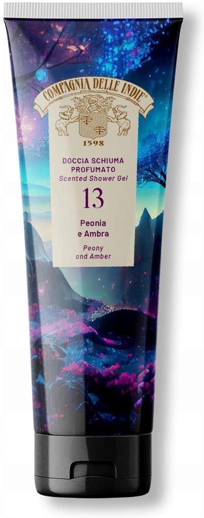 Compagnia Delle Indie Doccia Schiuma Peonia e Ambra to perfumowany żel pod prysznic o pojemności 250 ml, który łączy wyjątkowe właściwości oczyszczające i nawilżające z wyrafinowaną kompozycją zapachową. Formuła oparta na ekstraktach z liści malwy, aloesu i korzenia rusco delikatnie pielęgnuje skórę, zapewniając jej świeżość i miękkość. Zapach żelu to harmonijne połączenie aromatycznego bukietu pomarańczy, bergamotki, bursztynu i skóry z głębokimi nutami sosny, czarnego pieprzu i morskich akcentów. Jego konsystencja łatwo się rozprowadza, pozostawiając skórę otuloną niezwykłym, romantycznym zapachem, który wprowadza w stan relaksu i dobrego samopoczucia. Aby wzmocnić efekt pielęgnacyjny, zaleca się stosowanie żelu w połączeniu z Nawilżającym Kremem w Płynie lub Odżywczym Masłem Do Ciała z tej samej linii zapachowej. Compagnia delle Indie, marka w 100% włoska, znana jest z tworzenia wegańskich i przyjaznych dla planety produktów, które nie tylko dbają o skórę, ale także o środowisko. Żel został przetestowany dermatologicznie, klinicznie, a także na obecność niklu, co gwarantuje jego bezpieczeństwo i skuteczność. . Produkt jest dostępny w tubce, idealnej do kąpieli i prysznica, i nie zawiera składników pochodzenia zwierzęcego. Codzienne użytkowanie tego żelu pod prysznic sprawi, że Twoja skóra będzie nie tylko oczyszczona, ale także otulona aksamitnym, zmysłowym zapachem piwonii, jaśminu, tuberozy, wanilii, bursztynu i drzewa sandałowego, który oczarowuje niczym niespodziewany pocałunek w świetle księżyca