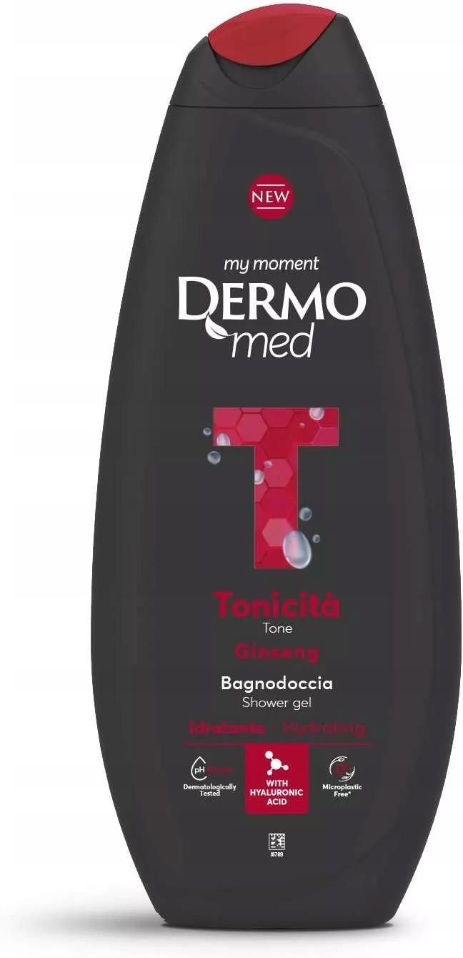 DERMOMED Żel pod prysznic ŻEŃ-SZEŃ, 750 ml Przyjemnie tonujący, wyraziście nawilżający żel pod prysznic DERMOMED delikatnie myje, pielęgnuje i chroni nawet najdelikatniejszą skórę, czyniąc ją pachnącą, miękką i jedwabistą. Ten włoski żel pod prysznic DERMOMED z żeń-szeniem wyraźnie poprawia nastrój i dodając energii napędza do działania! Kosmetyk posiada neutralne, nie zawiera mikroplastików. Testowany dermatologicznie. Formuła żelu DERMOMED zawiera kwas hialuronowy o właściwościach zmiękczających i nawilżających skórę: KWAS HIALURONOWY(Acido ialuronico) - to wysoce odporna, elastyczna cząsteczka liniowa w tkance łącznej skóry, zdolna do wiązania dużej liczby cząsteczek wody w celu lepszego nawilżenia skóry. Struktura chemiczna kwasu hialuronowego jest klasyfikowana jako glikozaminoglikan, długa sekwencja złożona z dwóch prostych cukrów, kwasu glukuronowego i N-acetyloglukozaminy.Kwas hialuronowy ujędrnia skórę, nadaje jej większą plastyczność i elastyczność, tworząc jednocześnie rezerwę wody. Kwas hialuronowy zapewnia różne korzyści dla skóry w zależności od jego masy cząsteczkowej. Wysoka masa cząsteczkowa sprawia, że dłużej utrzymuje się na powierzchni skóry, zapewniając lepsze nawilżenie w krótkim i średnim okresie, natomiast cząsteczki o niskiej masie cząsteczkowej wnikają w naskórek, wypełniając skórę i wygładzając zmarszczki, zapewniając długotrwałe działanie łagodzące i nawilżające. ŻEL POD PRYSZNIC DERMOMED ŻEŃ-SZEŃ Myje i pielęgnuje oraz ochroni skórę. Odpowiednio nawilża i dodaje energii. Zapewnia ciału uczucie jedwabistości i gładkości. Zawiera kwas hialuronowy. Testowany dermatologicznie. Bez mikroplastiku. Wyprodukowany we Włoszech.