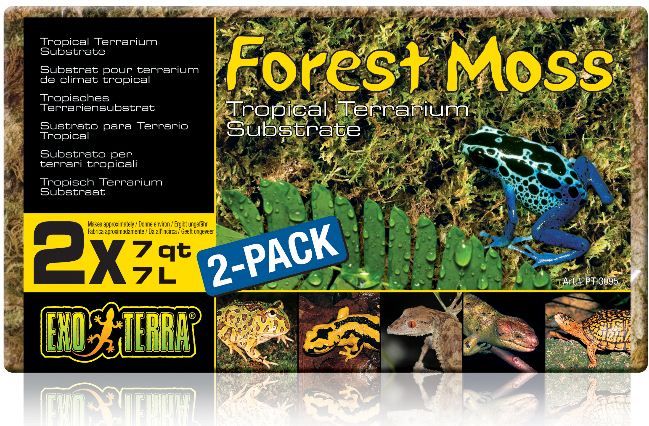 Naturalny mech tropikalny spisuje się doskonale w zbiornikach wymagających podwyższonej wilgotności Exo Terra Forest Moss to prawdziwy, sprasowany mech uprawiany w tropikalnej Azji. Jest to doskonałe, ekologiczne podłoże i element wystroju do terrarium typu tropikalnego oraz leśnego. Idealnie nadaje się do zwiększania wilgotności w zbiorniku i jest całkowicie bezpieczny dla żab, salamander oraz zwierząt grzebiących lub kopiących. Świetnie się sprawdzi także w kryjówkach i jaskiniach! Wspomaga on rozwój i odżywianie roślin. Jest również doskonałym podłożem do inkubacji. Opakowanie zawiera mech w postaci sprasowanego bloczka. Wystarczy umieścić go w odpowiednio dużym pojemniku i zalać ciepłą wodą. Blok się rozpręży dając nam ok. 7 L podłoża, które po odsączeniu nadmiaru wody jest gotowe do użycia w terrarium lub inkubatorze. W opakowaniu znajdują się, aż dwa takie bloczki! Najważniejsze cechy Exo Terra Forest Moss Całkowicie naturalny mech leśny Bez barwników i środków chemicznych Idealny dla płazów i gadów z terenów podmokłych Świetny do nawilżenia kryjówek Doskonały do stosowania jako podłoże do składania jaj i inkubacji Opakowanie kostka sprasowana - 500 g objętość po rozprężeniu - 7 L ilość w opakowaniu - 2 szt.