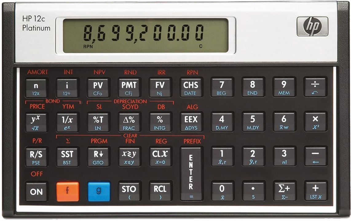 KALKULATOR FINANSOWY HP-12C PLAT/INT, 130 FUNKCJI, 129X80X15MM, CZARNY kalkulator finansowy ponad 130 wbudowanych funkcji funkcje matematyczne: +, -, /, *, Neg, 1/X, Ln, 10x, e, kwadrat, pierwiastki kwadratowe, potęga, %, obliczenia %, zaokrąglanie, część ułamkowa i całkowita rejestry pamięci: 20 …