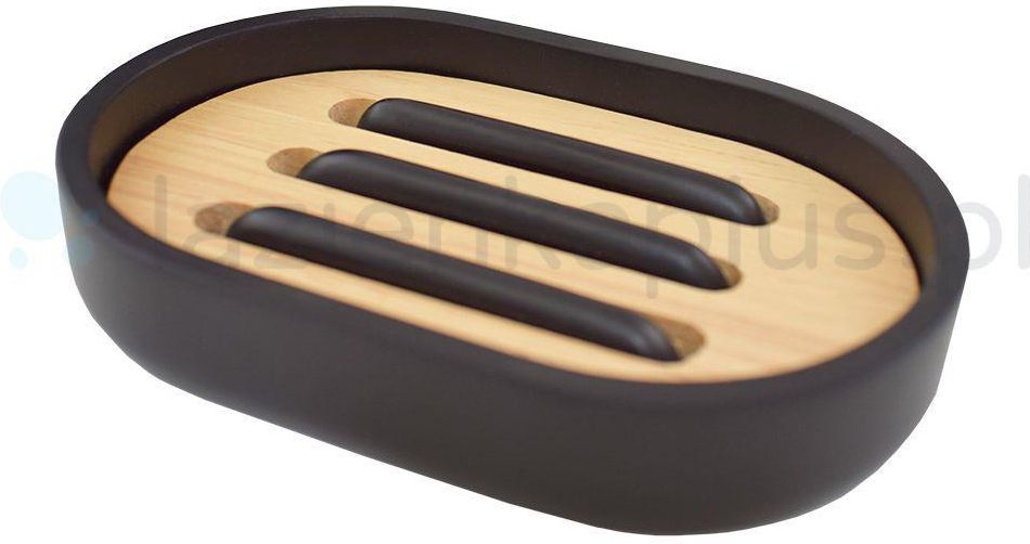NOWOCZESNA MYDELNICZKA Z DREWNIANYM WYKOŃCZENIEM Mydelniczka to akcesorium łazienkowe, które łączy w sobie ciekawy wygląd z praktycznym zastosowaniem. To właśnie małe akcesoria, takie jak dozowniki na mydło w płynie, kubeczki na szczoteczki czy mydelniczki, znacznie wpływają na wystrój naszej łazienki, zwłaszcza jeżeli są skomponowane w harmonijny zestaw. W przemyślanie zorganizowanej oraz uporządkowanej łazience z pewnością poczujemy się komfortowo. Mydelniczka posiada minimalistyczną formę, drobne detale oraz modną kolorystykę. Czarna mydelniczka podkreśla elegancką całość. To połączenie sprawia, że produkt ten wpisuje się w najnowsze trendy wnętrzarskie. Specyfikacja techniczna Materiał wykonania: Żywica poliresin, drewno Kolor: Czarny Długość: 12,3 cm Szerokość: 8,2 cm Wysokość: 2,3 cm