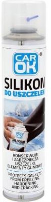 Silikon w sprayu do konserwacji uszczelek Silikon w sprayu do konserwacji uszczelek to profesjonalny środek do zabezpieczania elementów gumowych w samochodach i innych pojazdach. Zapobiega pękaniu i twardnieniu. Niezbędny w każdym garażu i warsztacie, może być stosowany przez cały rok. Dzięki aplikacji w sprayu łatwo dotrze do wszystkich trudno dostępnych miejsc. Parametry: Marka: CarOk Pojemność: 300 ml Przeznaczenie: do konserwacji uszczelek i elementów gumowych Łatwa aplikacja za pomocą sprayu