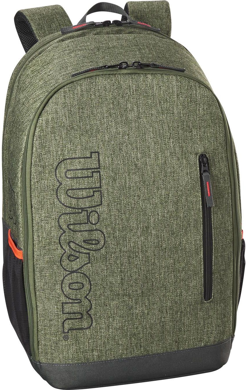 Wilson Team Backpack - lekki plecak sportowy przeznaczony dla osób szukających funkcjonalnego plecaka na korty, siłownię, fitness a nawet do szkoły. Plecak wyposażony w osobną przegrodę na rakietę. Komora główna zmieści najbardziej potrzebne na korcie rzeczy: strój, obuwie, piłki. W jej wnętrzu znajduje się kieszń z zamkiem np. na portfel. Komora chroniona solidnym dwukierunkowym suwakiem. Przegroda na rakietę umiejscowiona jest z tyłu pomiędzy komorą główną, a 'plecami' plecaka i zamykana jest solidnym dwukierunkowym zamkiem. Dodatkowo plecak posiada przednią kieszonkę z suwakiem na rzeczy podręczne lub akcesoria oraz siateczkowe przegrody na bokach na bidon lub piszke piłek. System nośny to dwie solidne, regulowane szelki pokryte od wewnątrz siateczką zwiększającą cyrkulacji powietrza. Plecak możemy przenieść również w dłoni za pomocą uchwytu. Wymiary: 46 x 30 x 21 cm, Kolor: heather green(za producentem), Materiał: poliester,
