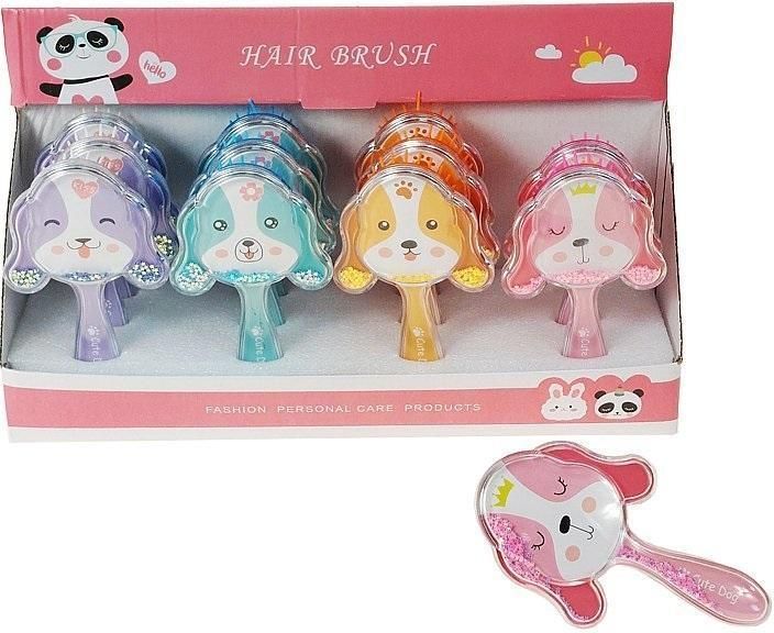 Szczotka do włosów Piesek, różne kolory w zestawie, display 12szt. Wymiary: 345x160 mm Opakowanie: pudełko