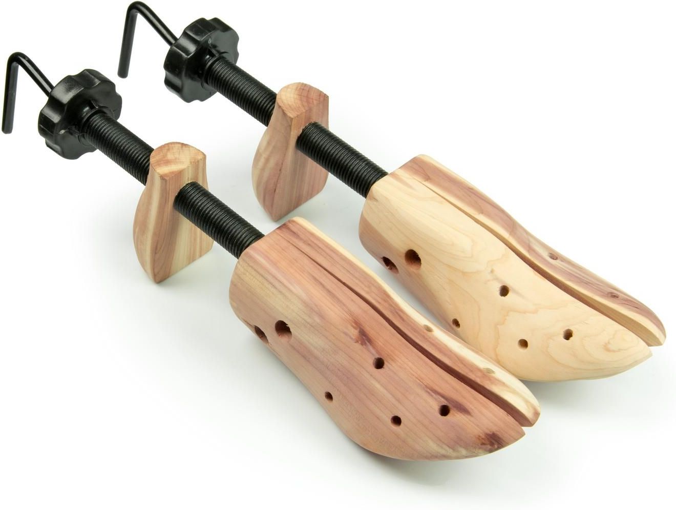Prawidła rozciągające męskie Massido para Model: 6105 Główne cechy: uniwersalny rozmiar regulacja długości i szerokości 4 końcówki rozszerzające w zestawie drewno sosnowe absorbują wilgoć Ze względu na szczególne właściwości naturalnego drewna, każda para jest unikalna wizualnie i może delikatnie różnić się od zaprezentowanych na fotografii. Na czym polega działanie prawideł rozciągających? Masz eleganckie, ładne obuwie, ale zamiast na Twoich nogach ich miejsce do tej pory było w szafie? Nadszedł czas się nimi pochwalić! Właśnie znalazłeś rozwiązanie problemu obciskających, niedopasowanych butów. Prawidła rozciągające Massido dostosują dowolne obuwie do kształtu i wymiarów stopy – i na długość, i na szerokość. Anatomiczny kształt i możliwość dokładnej regulacji szybko pozwolą Ci cieszyć się wygodą. Dlaczego drewno? Dzięki wykorzystaniu drewna prezentowany model prawideł cieszy się największą popularnością i zaufaniem wśród właścicieli eleganckiego obuwia. Zawdzięcza to unikalnej właściwości: bardzo skutecznej absorpcji wilgoci. Specyfikacja: Rodzaj drewna: sosnowe. Długość całkowita: ok. 20 - 29 cm. Szerokość: ok. 7,2 - 9,2 cm. Rozmiar: męski, uniwersalny. Ilość: 2 szt.