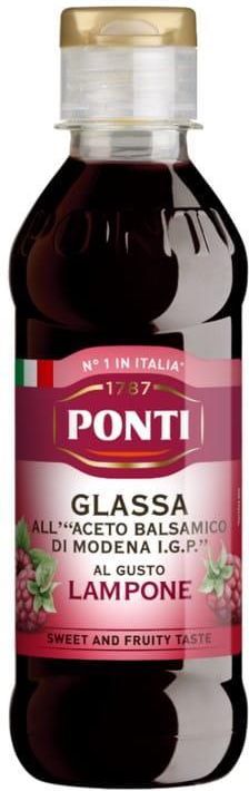 Ponti Glassa Polewa na bazie octu balsamicznego z Modeny z sokiem malinowym eko 250 g DATA WAŻNOŚCI: MAJ 2022 Możliwość zakupu w opakowaniu zbiorczym: 6 sztuk. Włoska Glassa malinowa Ponti - wyjątkowy sos na bazie szlachetnego octu balsamicznego z Modeny, wzbogaconego owocową nutą malin. Glassa …