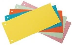 - mix kolorów - wykonane z kartonu o gramaturze 190gsm - do wpinania w pionie oraz w poziomie - dziurkowanie: 4 (dziurki w odstępie 80mm) - rozmiar przekładki: 235x105mm - 100 sztuk - każdy komplet osobno pakowany w folię