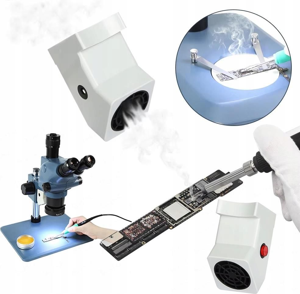 Pochłaniacz oparów do mikroskopu stereoskopowego Ma3+ mini Kompatybilność: Pasuje do mikroskopów Rosfix z serii Planets Pro, takich jak Mercury, Jupiter i podobne modele. Łatwa instalacja i stabilność: Bezproblemowe mocowanie kompatybilne z mikroskopami stereoskopowymi. Bezpieczna praca: Skutecznie absorbuje szkodliwe opary spawalnicze podczas pracy z mikroskopem. Wygodne zasilanie: Bezpośrednie podłączenie przez port USB, zapewniając prostą obsługę. Wysoka wydajność: Silnik o mocy 12V zapewnia dużą moc i efektywność działania. Stabilna prędkość: Wytrzymała konstrukcja z łożyskiem kulkowym dla niezawodnej pracy. Kompaktowy design: Mały, lekki i łatwy do przenoszenia – idealny do mobilnego użytku. Uniwersalność: Pasuje do uchwytu A1, co czyni go wszechstronnym dodatkiem. Łatwa konserwacja: Prosty w czyszczeniu dla długotrwałej funkcjonalności Specyfikacja: Moc: 12V Port zasilania: USB Kolor: Biały Maksymalna prędkość: 3500 obr./min Zestaw zawiera: 1 x Pochłaniacz oparów do mikroskopu stereoskopowego Ma3+ mini 1 x Przewód USB 5V na 12V Niezastąpiony pomocnik do precyzyjnych prac technicznych z mikroskopem – wygodny, wydajny i łatwy w obsłudze!