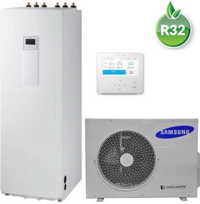 SAMSUNG EHS CLIMATEHUB (R32) 4,4/5KW POMPA CIEPŁA TYPU SPLIT AE200RNWSEG/AE040RXEDEG/MWR-WW10N Jednostka wewnętrzna z zasobnikiem 200 L: AE200RNWSEG Jednostka zewnętrzna: AE040RXEDEG Dedykowany sterownik: MWR-WW10N Firma Samsung wyznaje prostą filozofię działania: angażować swoje umiejętności i technologię, by tworzyć najwyższej klasy produkty i usługi, tym samym przyczyniając się do rozwoju globalnej społeczności. W tym celu firma Samsung przykłada dużą wagę do swoich pracowników i technologii. Samsung wierzy, że działanie zgodnie z fundamentalnymi zasadami jest korzystne dla pomyślnego prowadzenia działalności. Dlatego właśnie nasze kluczowe wartości oraz rygorystyczny kodeks postępowania przyświecają każdej decyzji podejmowanej przez firmę. Jako lider w dziedzinie elektroniki Samsung wdraża do swojej oferty z powodzeniem rozwiązania z pompami ciepła. SAMSUNG EHS CLIMATEHUB - najważniejsze cechy Zintegrowane urządzenie grzewczo - chłodzące 4 - tryby pracy. W trybie cichym poziom ciśnienia akustycznego zaledwie: 35 dBA Jednostka wewnętrzna zintegrowana z zasobnikiem 200 lub 260 L Intuicyjny dotykowy sterownik Monitorowanie zużycia energii Ułatwiona instalacja, dzięki łatwemu dostępowi serwisowemu na panelu przednim Współpraca z siecią smart grid i fotowoltaiką Sterowanie dwustrefowe Współczynnik SCOP = A+++ Wbudowana grzałka elektryczna Smart Things kompatybilne z opcjonalnym zestawem WiFi SAMSUNG EHS CLIMATEHUB - KOMPAKTOWA BUDOWA Zintegrowany hydromoduł z zasobnikiem C.W.U, to kompaktowe kompletne rozwiązanie, oszczędzające miejsce oraz czas montażu. Intuicyjny dotykowy sterownik ma logarytm do sterowania dwustrefowego, co sprawia, że nie ma konieczności stosowania dodatkowych sterowników mieszacza pomp obiegowych oraz siłowników. Zestaw standardowo wyposażony jest dodatkowo sterownik bezprzewodowy pokojowy, z funkcją termostatu. Funkcja Smart Grid powoduje, że pompa ciepłą Samsung doskonale współpracuje z instalacją fotowoltaiczną. SAMSUNG EHS CLIMATEHUB - parametry techniczne SAMSUNG EHS CLIMATEHUB - rysunki wymiarowe Hydromoduł wewnętrzny - AE200/260RNW**G Jednostka zewnętrzna - AE040/060RXEDEG