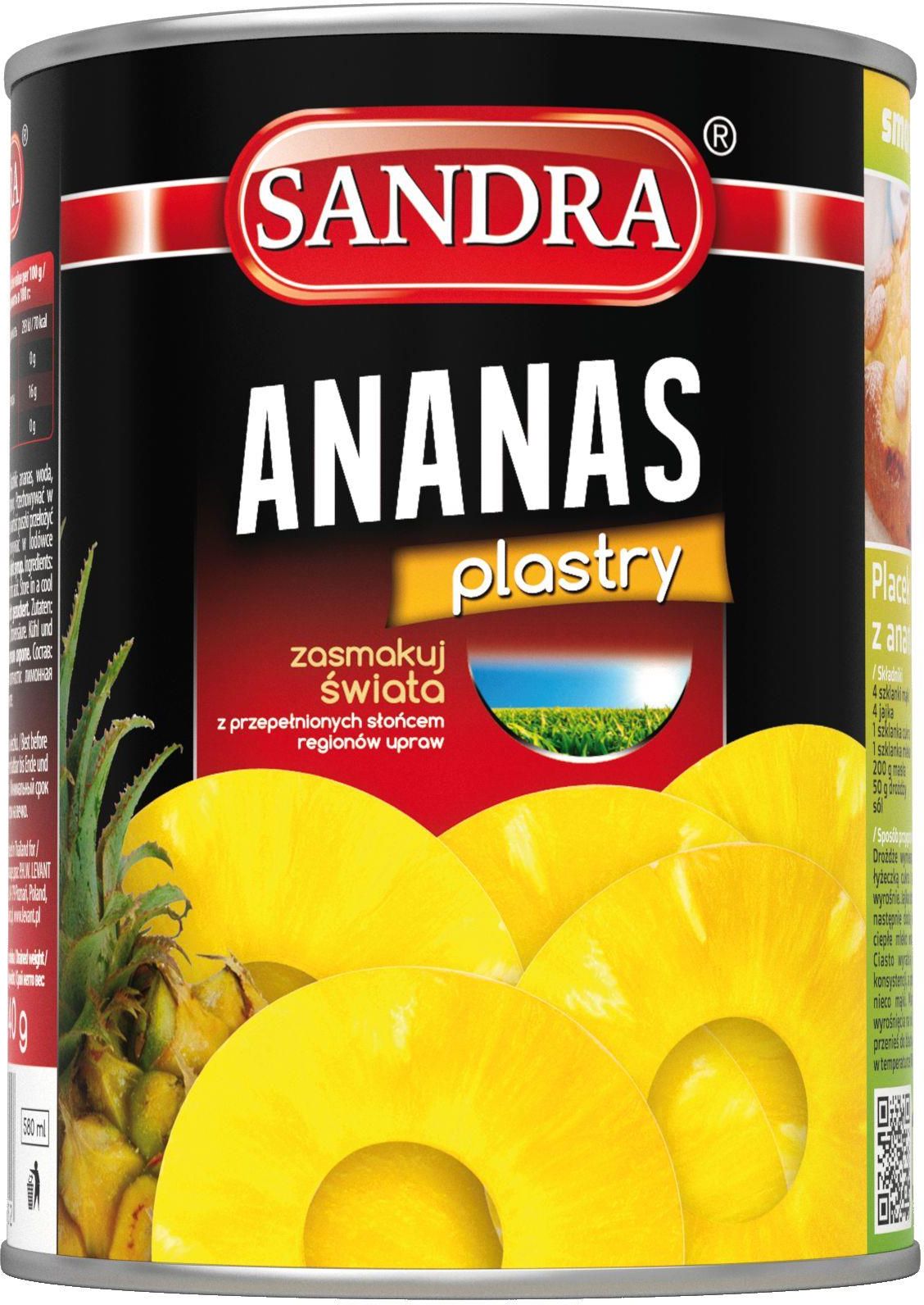 Zdjęcie Sandra Ananas w plastrach w lekkim syropie puszka 580ml - Rabka-Zdrój