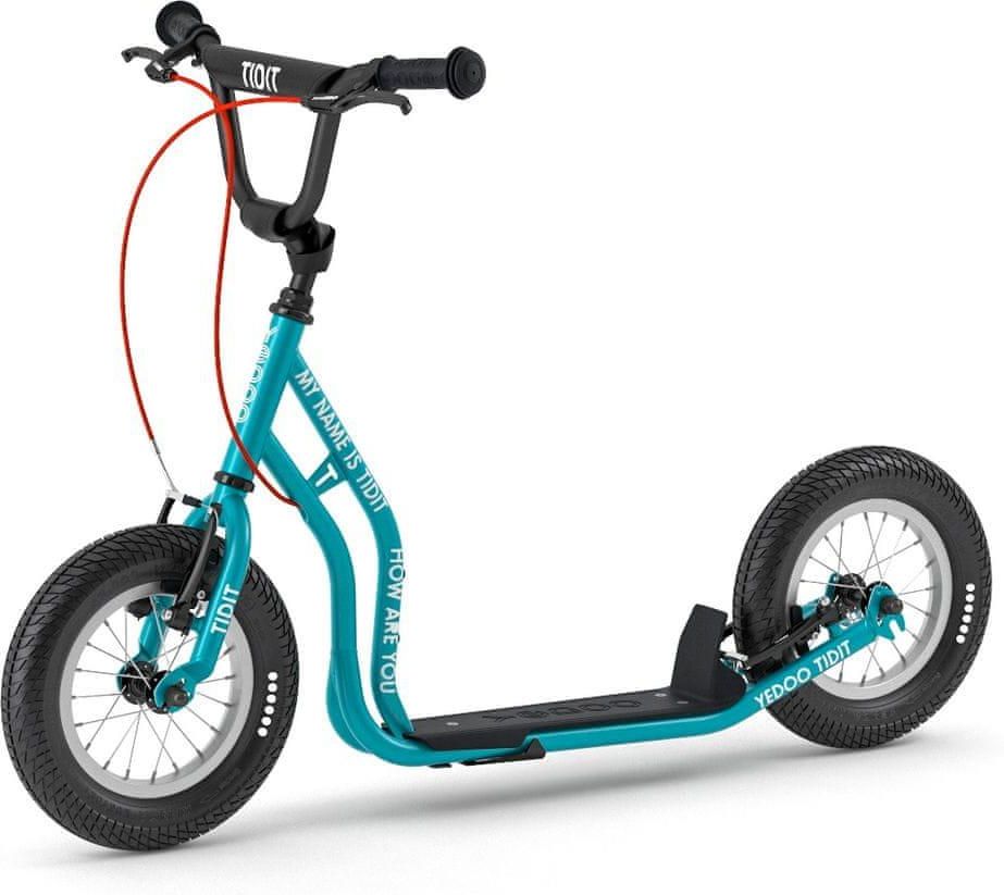 Hulajnoga Yedoo Tidit jest dla tych, którzy już w szafie planują, jak złapać żaby w drodze ze szkoły do domu lub w końcu otworzyć bramy starego ogrodu. Hulajnoga Yedoo Tidit ma nowe hamulce na obu kołach, dzięki czemu może bezpiecznie radzić sobie z ostrzejszymi stylami jazdy, trudnymi warunkami jazdy i trudniejszym prowadzeniem. Chociaż tego nie zalecamy, wiemy, jak nieodparte jest zjechanie z krawężnika lub pokonanie przeszkody w skateparku. Lepiej przygotujmy maszynę. Hulajnoga nadaje się do pierwszych przejażdżek dla dzieci w wieku powyżej 5 lat. Nośność do 90 kg. Ostrzeżenie: Dostarczamy niezmontowane w pudełku . Wszystkie hulajnogi Yedoo są objęte 3-letnią gwarancją na ramę. Główne zalety hulajnogi Tidit: przeznaczony dla przedszkolaków i dzieci w wieku szkolnym waga lekka prawidłowa wysokość podnóżka bieżnik antypoślizgowy uchwyty ze wzmocnionymi końcówkami elementy odblaskowe na oponach i ramie dwupozycyjny tylny widelec umożliwiający regulację wysokości podnóżka kółka z wysokiej jakości łożyskami nadmuchiwane opony wysokiej jakości hamulce na obu kołach udźwig do 90 kg regulowana kierownica od 75 do 84 cm Dane techniczne: Nośność 90 kg Min. wzrost rowerzysty 110 cm Masa (ze stojakiem/bez stojaka) 7,1 / 6,9 kg Rama YEDOO Hi-ten stal Widelec ze stali YEDOO Hi-ten Przedłużka YEDOO Hi-ten stal 22,2 / 25,4 Kierownica YEDOO stal Hi-ten Poręcze YEDOO z wydłużonymi końcami Zespół głowicy stalowej NECO z gwintem 1" Dźwignie hamulca 2x stop TEKTRO JL510-RS Hamulec 2x "V" stop TEKTRO Felgi aluminiowe HJC Stalowe piasty JOYTECH piasta Szerokość (przód/tył) 74/74 mm Łożyska Konusova Dźwignie szybkiego zwalniania (przód/tył) Nie / Nie Opony (przód/tył) KENDA / INNOVA 12x2,25 / 12x2,25 Maks. ciśnienie (przód/tył) 5,5 bara / 5,5 bara Przygotowanie do uchwytu na butelkę (gwinty 2x M5, skok 64 mm) 1x Stojak Zintegrowane centrum YEDOO Produkt jest zgodny z normą EN 14619 Długość 114 cm Krok 34 cm Wysokość kierownica 75-84 cm Szerokość rozwarcie 54 cm