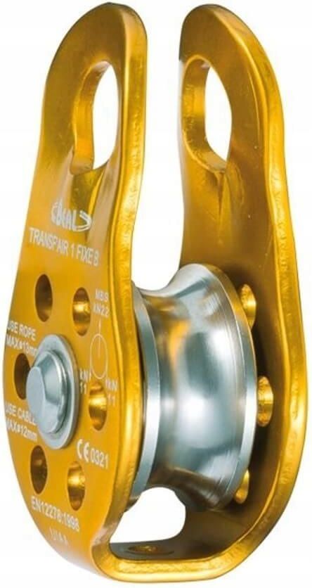 PETZL Bloczek stały Transf'Air Fixe B Bloczek z okładkami nieruchomymi z rolką na łożysku kulkowym. Łatwy w manipulacjach dzięki niewielkiemu rozmiarowi i wadze. Pozwala na założenie układu do wyciągania przy użyciu np. przyrządu zaciskowego. - Ø max ≤ 13 mm. - EN12278: 1998. Zalety: Nr indywidualny. łożysko kulkowe. Waga: 120 g Wytrzymałość na zerwanie: 22 kN